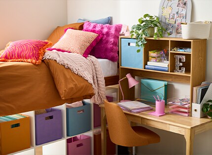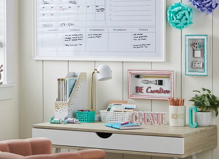 Aside from décor, it’s important to organize your dorm to have a calming space. From rolling carts and under-bed bins to desktop organizers and drawer dividers, we have smart storage solutions that help maximize small spaces without sacrificing your aesthetic. Stay productive with essentials like whiteboards, planners, pens, and study aids - everything you need to stay on top of your schedule and study in style. Don’t forget to have fun though. Capture your favorite college moments with photos, keepsakes, and scrapbooking supplies that help you look back on every milestone and keep you motivated. Keep your semester on track with Michaels!