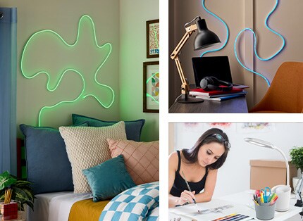 Layer a warm LED strip behind your bed or shelf, then set it to a soft amber tone. Instant golden hour glow—perfect for studying and selfies.