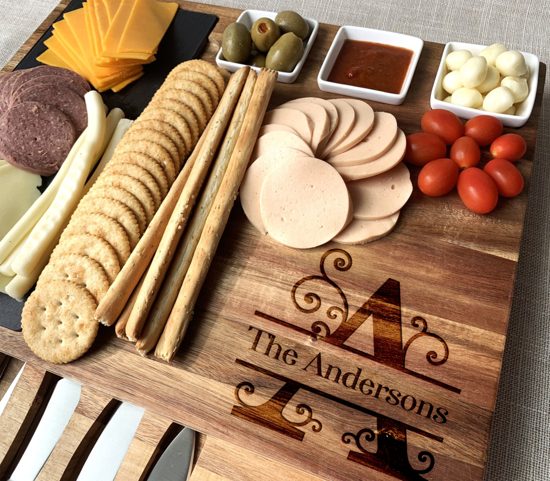 If your mom loves to host dinner parties she will love a Mother's Day gift from our kitchen & dining collection like this personalized charcuterie board set complete with cheese knives. A statement piece for any get together, this gift will be used for years to come.