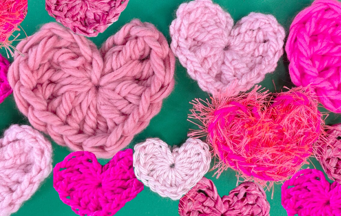 Crochet hearts are a simple and fun project that brings bundles of joy. With a few beginner crochet stitches you will be crocheting hearts in no time. I like to use a 9mm hook with a bulky weight yarn for large hearts and a 5mm hook with a medium weight yarn for smaller ones. Get ready to spread some love!