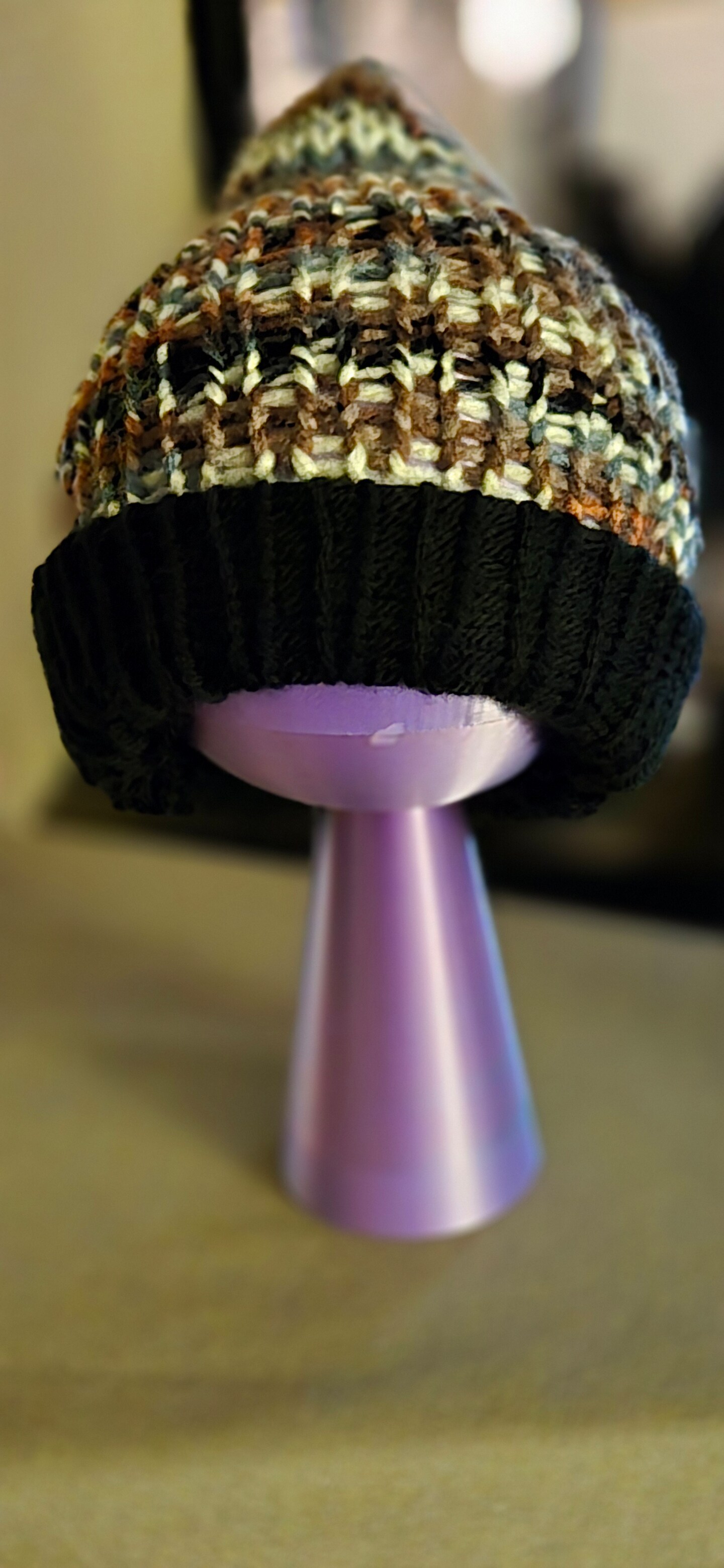 I make my beanies using a circular knitting machine with 40 needles and medium-weight yarn. They're soft, stretchy, and perfect for any season! Casting on I start by threading the yarn through the tension guide and skipping the first needle. Then I alternate wrapping in front and behind each needle until I reach the beginning again. Once it's set, I place the yarn in the guide and slowly turn the handle to build a smooth foundation row.