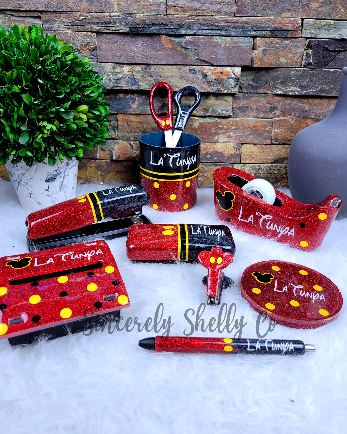 I am former engineer for a very well known microchip company. After 13 years I decided to become a stay at home mother. Now that the kids are in school I have turned my energy & OCD tendencies into creating high quality custom desk sets, tumblers and signs.