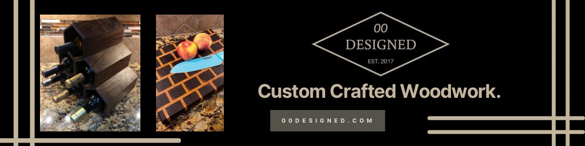 Welcome to 00 Designed! Named so because I am a HUGE James Bond fan. I sell a nearly infinite variety of items, and do a lot of custom projects. I make items ranging from small turnings and household items, up to large furniture. I buy rough lumber and do all the work in my shop. I do all of my work myself by hand, but of course I have power tools and machines to help and give even more customization. Especially from the CNC and laser. I can do SOOOO many different options of items and have dozens of ways to customize each one. Want something specific? Just get in touch!