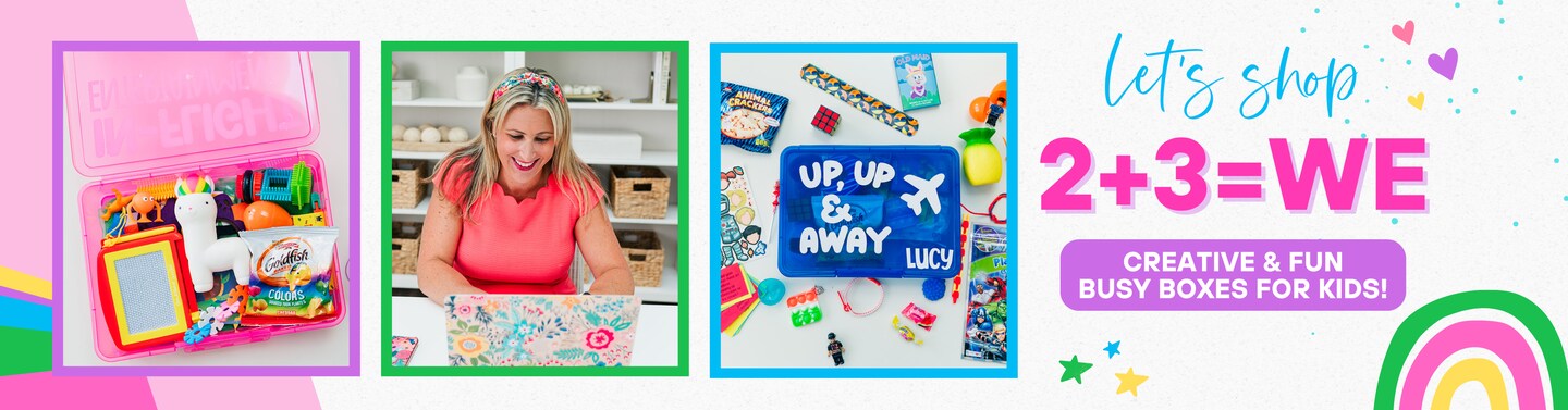 Welcome to 2+3=WE, where keeping kiddos happy and entertained is my jam! I'm Kimmy, small business owner and mom of three amazing children (aged 4, 9 and 12) based in St. Louis. My mission? To sprinkle a bit of magic into your day with carefully curated busy boxes that are packed with fun activities and guaranteed to bring smiles to little faces. Let’s make parenting a little easier and a lot more fun together!