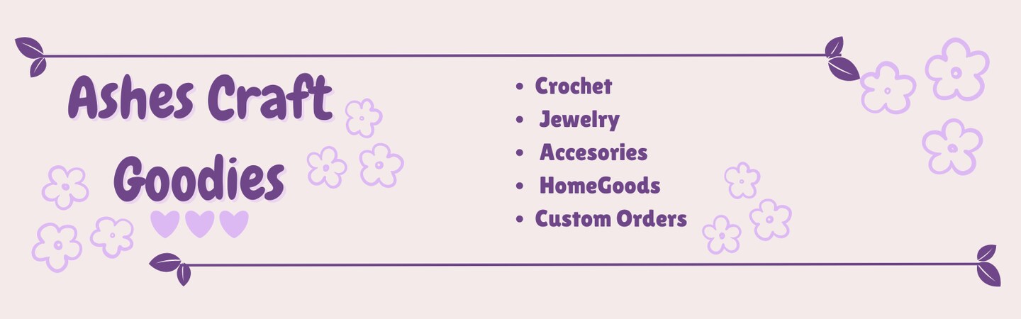 AshesCraftGoodies Welcomes you! Hi, my name is Ashley and I love creating handmade goods. I'm been crocheting for 3 years now but I've been crafting my whole life. I enjoy sharing my creations with everyone. Everything on my shop is made with lots of love and care.