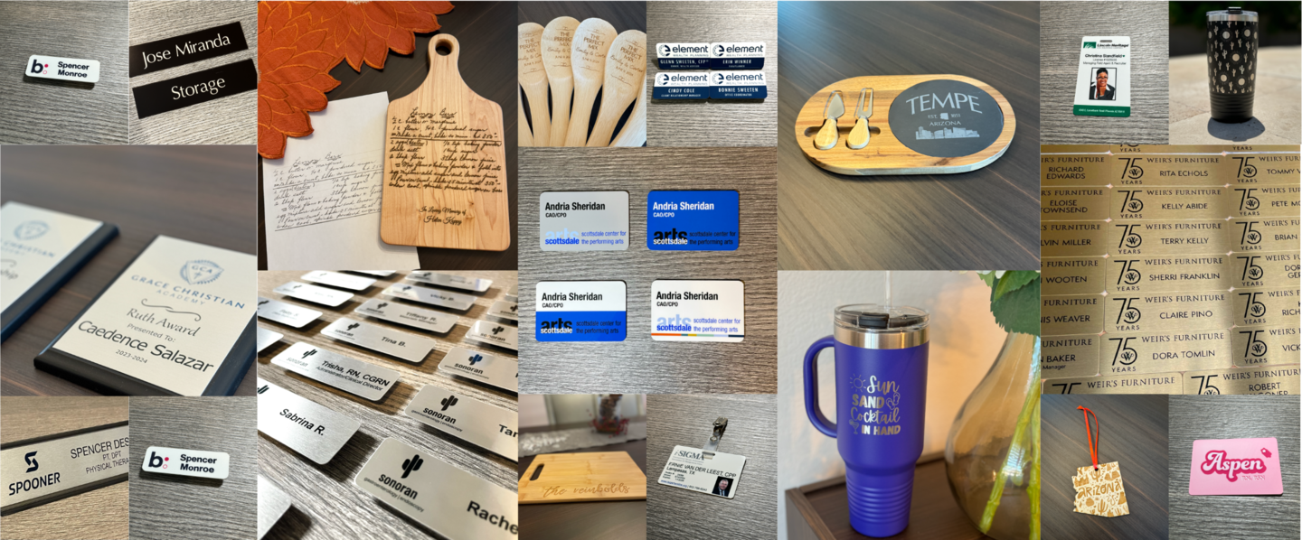 Welcome to Badge Express and More! At Badge Express, we deliver high-quality, customizable name badges and recognition products designed to enhance your brand. With over 45 years of experience, our commitment to excellence ensures you receive products that stand out. We pride ourselves on providing top-notch customer service, supporting you from design to delivery. Our quick turnaround times and dedication to customer satisfaction make us the preferred choice for customers nationwide. Our Custom Products Include: Name Badges IDs Plaques & Awards Name Plates Cutting Boards Charcuterie Boards Coasters Tumblers Key chains Ornaments and much more!