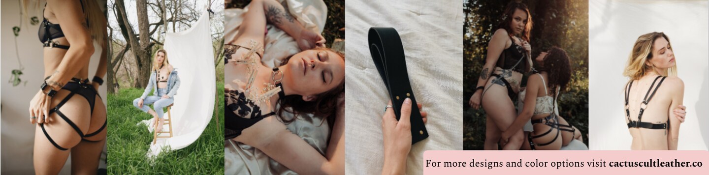 Welcome to the Cactus Cult! (I promise I just like alliterations; this isn't actually a cult) I am a one woman owned and operated luxury eco-friendly intimates shop based out of Boise, Idaho. All of the items found in the shop are either plant based or made out of repurposed materials. I combined my passions for kink, creation, and the environment to create Cactus Cult. I am looking to break the stereotypes of dark red/black bdsm and instead take a more natural and organic approach to power play and its adornments. I create both casual and lingerie styles of pieces for every occasion. There can be a lot of hesitation around 'vegan' materials, and we can blame the fast fashion industry for that, but the leather used in my shop is made of actual cacti! I use Desserto Cactus Leather - an earth friendly company based out of Mexico. Their leather is soft, sturdy, and long lasting. Because its made of cactus fibers, it takes very little water to produce and creates 20 times less greenhouse gas emissions than animal leather processing. Plus, it is completely cruelty free! Take a look around - I hope you see something you like, but if not, feel free to message me for custom order!
