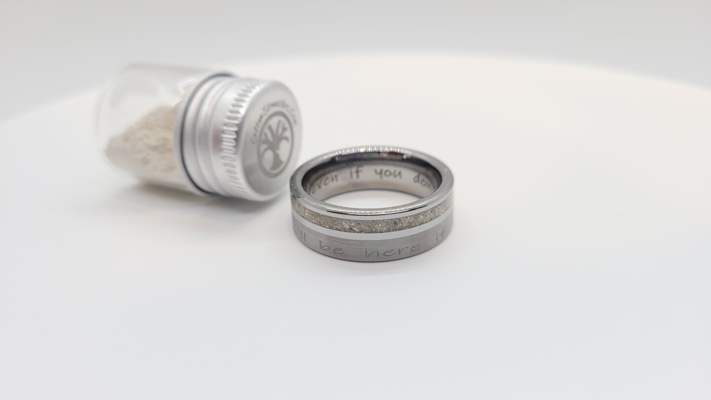 Hello and Welcome to Cotton Street Art! We are a small Tennessee shop owned and solely operated by my husband (Matt) and me (Leigh). We have been crafting handmade rings since 2016! We have over 92 colors of opals, multiple Glow-in-the-Dark colors, unique material such as fossil, meteorite, amber, crystals, etc. We create these one of a kind rings on core material such as Titanium, Tungsten, Ceramic, Sterling Silver, or Damascus Steel. We specialize in memorial rings: rings that are created from special materials you send us. These materials can be cremated ashes from loved ones, friends, or pets. It could be beach sand or dirt from a special place. We can use hair, fabric, or dried flowers. Even things like coffee, breast milk, and guitar strings can be used to create a truly personal and one of a kind ring. And we make pendants and bracelets too! Plus we can custom laser engrave anything! Including wooden gift boxes for any item you find in our shop. If you can't find the perfect item, just let us know as we accept and appreciate custom designs. Thank you so much for stopping by (and for bothering to read all this). Take care and be well, Matt & Leigh Cotton Street Art