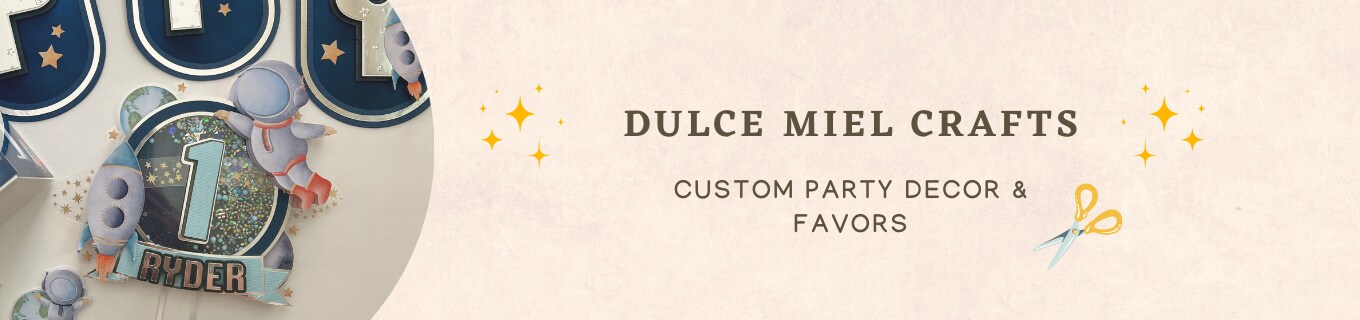 Welcome to Dulce Miel Crafts! I aim to provide you with party supplies, decor and favors that will make your event memorable. Every piece is designed and made to be a show stopper for you and your guests! As a mom I know the importance of having memorable special events and how hard it is to find unique themes and decor. Dulce Miel Crafts provides you with unique decor and favors to make memories with your loved ones. All items can be keepsakes and photograph beautifully. We hope to be your one stop shop for your party needs!