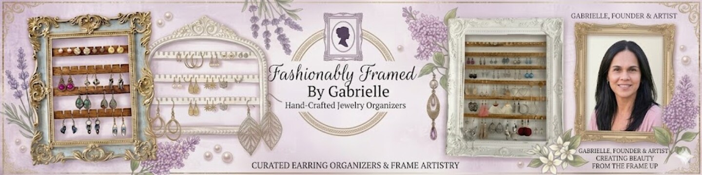 ✨ When it comes to displaying and admiring your treasured jewelry pieces, settle for the best! Masterfully embellished frame organizers designed to save you space, appeal to the eye and show off your jewelry! ✨✏️ * Please contact me if you have any questions or concerns or need help deciding what option is best for you and your jewelry needs. *Choose from a variety of designs to fit your space or let me create something just for you. For a heads up on my newest designs, local shows, and discounts follow: https://www.facebook.com/profile.php?id=100092627209784 Thank you for supporting my small business Gabrielle