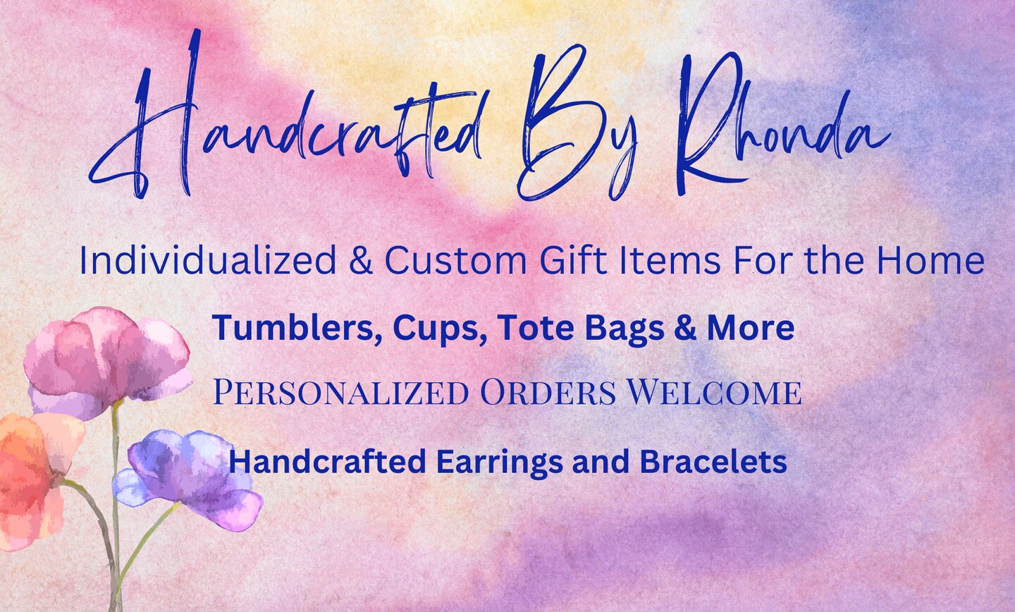 Welcome to Handcrafted By Rhonda.... I like to say I'm in my third act, but not final one. I've had a successful career in Human Resource, but my love for creating and design started many years ago. I started a career in interior design in addition to my regular gig. I enjoyed that business and my customers for over 7 years, but as life does it took a turn that changed my direction. The desire to continue to create lead to Handcrafted By Rhonda being born. I started my business several years ago using social media, attending craft shows and selling my merchandise in hair salons. The art of designing and creating customized products for people bring me joy! Tumblers and cups that reflect your unique personality, wearing jewelry that tells your story and reflects your personality or having a home décor piece to brighten your home. And let’s not forget the practicality of customized creations! They are reminders that we deserve to embrace our uniqueness and celebrate our individuality.