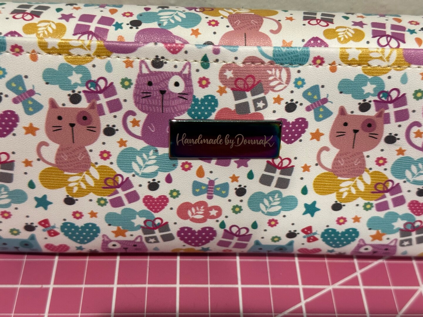 Welcome to Handmade by DonnaK. I began making purses, wallets, and bags while working as a travel healthcare worker. I was working several days from my family and needed a hobby to keep me occupied so I bought my first sewing machine. Just a few months later I bought my second, and I was hooked. I am now retired and supplement my retirement income with handmade bags, purses, and wallets. I have a small inventory of handbags and wallets. However, I am always willing to make personalized wallets and purses.
