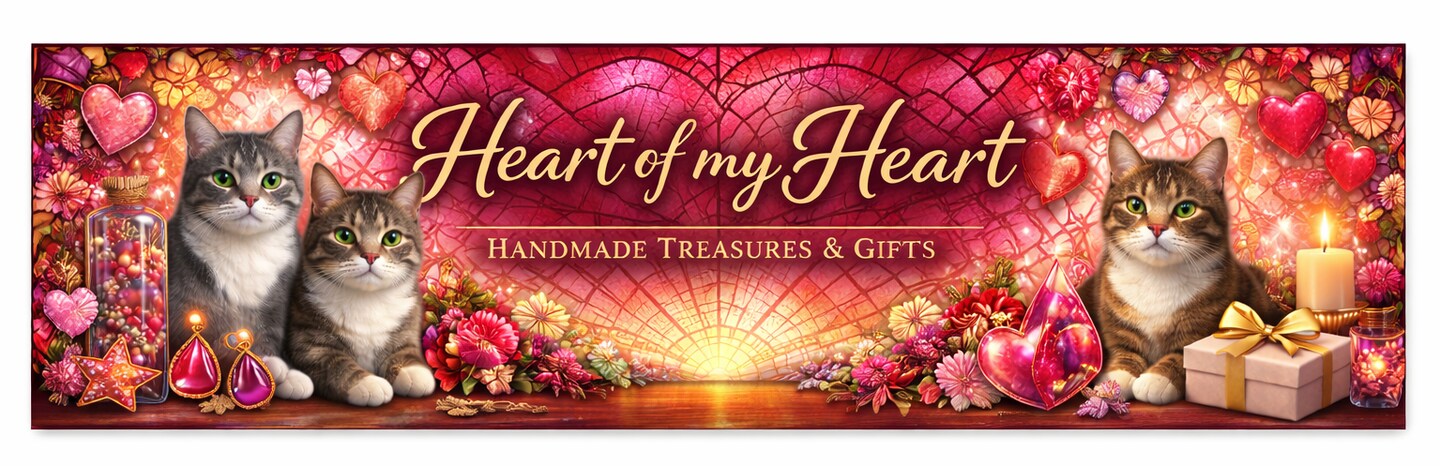 Heart Of My Heart is selling handmade luminous epoxy resin based pendant necklaces, key fobs, Day of the Dead themed trinket trays, and necklaces for children. They are created by me in my small workshop in Arizona. I have a long history of crafting including work with stained glass, mosaics, sewing/fabric art and others. I enjoy working with my hands to produce individual, fun pieces of vibrant color. Each item is unique in composition. Thank you for shopping here -- Linda.