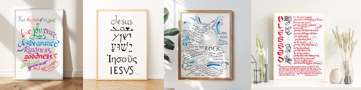 Decorate your home with the living word! New Life Calligraphy sells art prints of hand-written Bible verse calligraphy, and paintings with thoughtfully placed scripture.