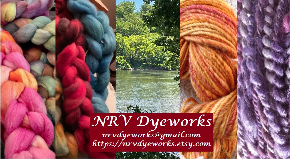 Welcome to our shop! We operate a small, indie dyeworks and spinnery from Virginia's beautiful New River Valley area. All our fibers are hand-dyed and all the yarns listed are handspun in a smoke-free home. We are pet-friendly, but we do try to keep them out of the studio. If you are interested in a custom item or would like any of our hand-dyed fibers spun into yarn for you, please contact us.