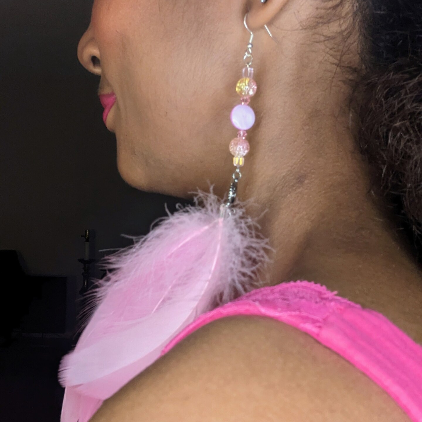 My name is Natalie Josephs. Welcome to my store. I design feather earrings, necklaces,bangles, and bracelets.. Materials that I use are different types of plastic and glass beads. Wires, jewelry findings, different bird feathers, and chains.