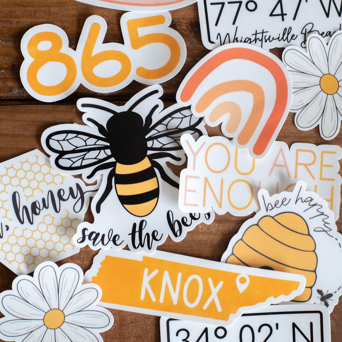 Originally founded upon a passion for honeybees and a joke at a restaurant, RatherBee is a Knoxville-based illustration studio. While North Carolina will always hold a special place in our hearts, East Tennessee is where we call home; and we wouldn’t have it any other way. RatherBee is comprised of Jackie, her husband Banks, and their 3 dogs. While in the process of moving to Knoxville, Jackie - very wrongly - thought that she would have no trouble finding a graphic design job after moving to the Knoxville area because of her extensive experience in the field. However, life had other plans right after the beginning of the Covid-19 pandemic. She had no idea what to expect when she started the business in July 2020, except that it was always a dream to be her own boss. As with any business, things started off small in the beginning. However, we now make (mainly) laser engraved products including plant stakes, stickers, magnets, ornaments, signs and more!