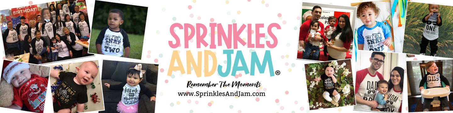 Kids' Birthday Shirts, Pregnancy Announcements, 1st Birthday Boy Shirts, 1st Birthday Girls Shirts. We love making baby boy clothes, baby girl clothes, personalized birthday shirts, pregnancy announcement onesies and gifts for little ones!! Thanks for shopping at our store! We decided to start this shop because we had some fun ideas for Birthday Tees and it just expanded from there. We love to create tees because the design process is fun and we love getting pictures from our customers! :) Once orders come in they go into queue immediately, we use a variety of media with one of them being vinyl. We start cutting the vinyl same day and pair it up with the garment purchased and it's placed on our assembly line for processing. All orders are then packaged with some Sprinkles&Jam love, and shipped in a timely manner via USPS or UPS. We strive for excellent customer service and high provide a quality tee. Take a peek around our shop and feel free to message us with any questions, we are here to help!! - S & J