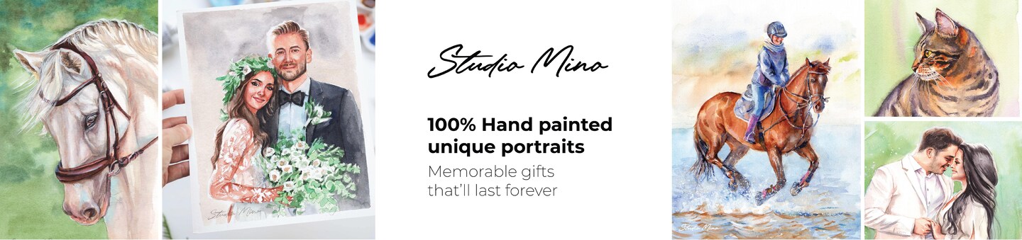 Hello! I’m Emine, the artist behind Studio Mino. With over 14 years of experience as a portrait and watercolor artist, I create custom paintings that celebrate the people, pets, places, and moments you cherish most. Watercolor inspires me with its light, fluidity, and unexpected beauty. Each portrait and wedding painting is crafted entirely by hand, allowing the paint and paper to tell a unique story. I also offer live event painting in San Diego County, capturing the magic of weddings and special occasions in real time. It’s an unforgettable way to preserve life’s most meaningful moments. Every piece is created with care and attention to the details that make your memories uniquely yours. Thank you for letting me bring your stories to life through watercolor. 😊