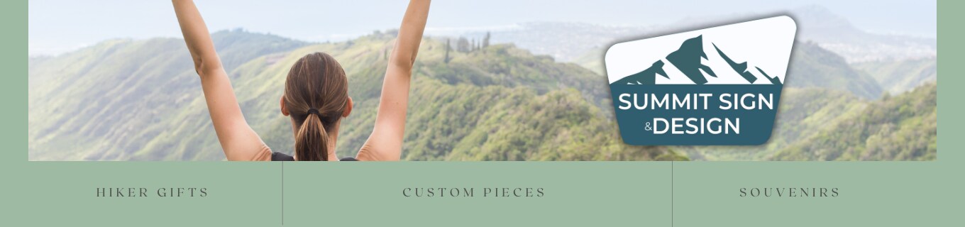 Welcome to Summit Sign and Design, where our passion for the great outdoors meets the artistry of woodcraft. Our hiker-inspired wood wall art pieces are more than just decorations; they're a celebration of adventure, nature, and the thrill of reaching new heights. Our mission is to not only meet, but exceed expectations with products that leave a lasting impression and commemorate your adventures. Founded in 2021 after a move from Florida to Virginia; we fell in love with the mountains and the outdoor community in Roanoke. Our vision to reward other nature junkies with beautiful, handcrafted souvenirs quickly became a reality. We are grateful to have completed over 600 successful projects and to have acquired a space locally, at Blue Ridge Indie Market. Whether you're an avid hiker, nature lover, or just someone who appreciates the beauty of the outdoors, we invite you to explore our collection and bring the spirit of the summit into your home. Happy Trails! Angela & Dan
