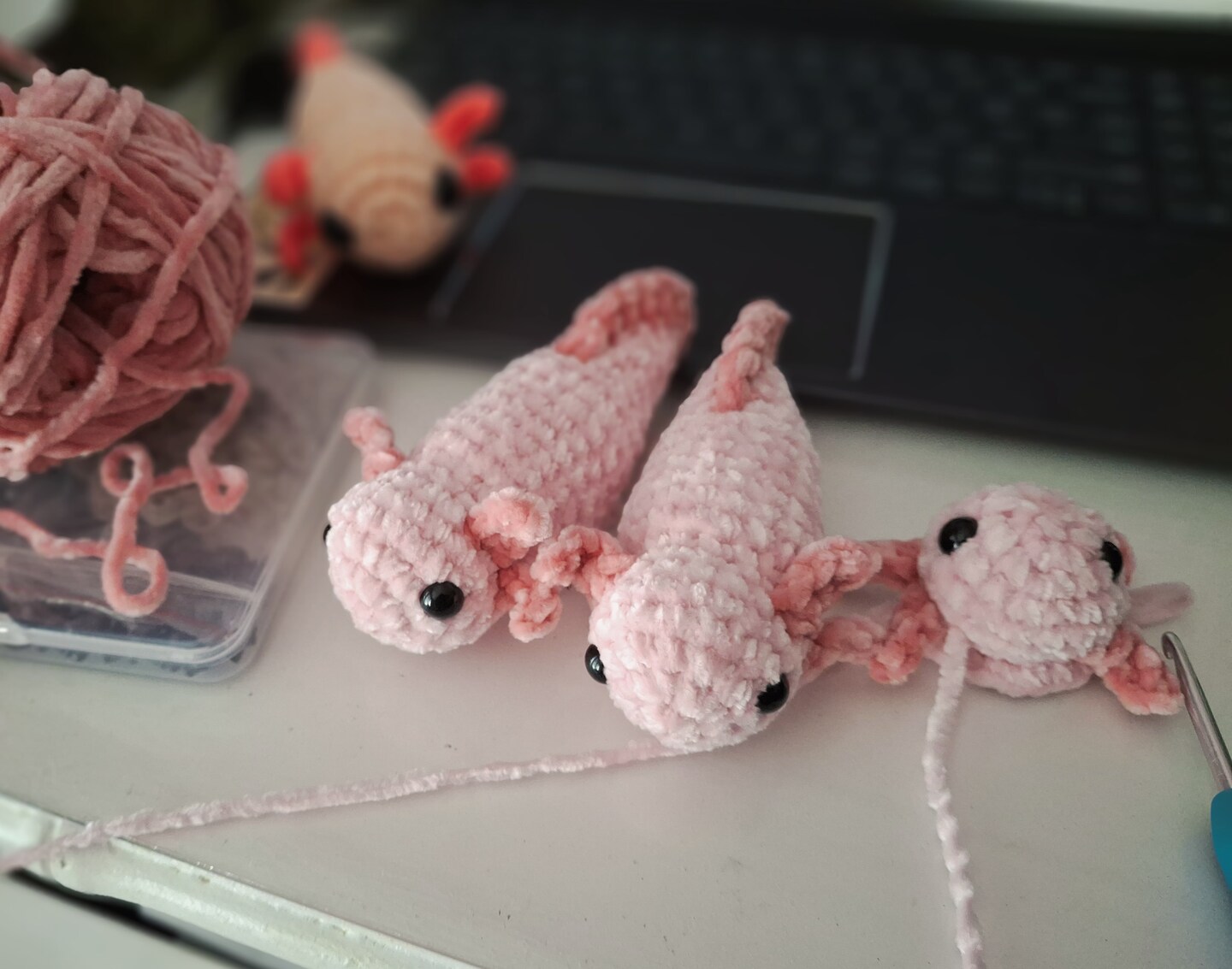 Welcome to The Yarn Samurai! I seriously appreciate you taking the time to stop by and browse my wares :) I've been crocheting for 7 years and selling for 1 (both online and in person to coworkers and at markets). As you may have noticed; I love crocheting, specifically plushies. I rarely use patterns because I love to improvise, figure it out as I go and have as much creative freedom as possible! I love the challenge of comissioned orders, drawings-to-plushies, and pet customs, so feel free to contact me for any special requests 😉 that said, I retain the right to refuse business for any reason I choose. Thank you!