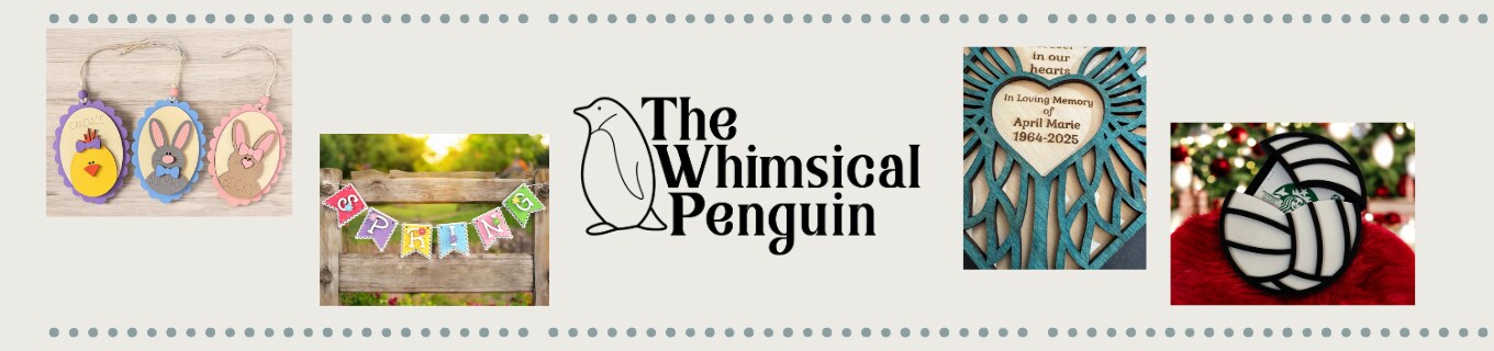 Welcome to The Whimsical Penguin I create and sell handmade home decor, personalized gifts, DIY kits, wood and leather jewelry, Christmas ornaments and holiday decorations.