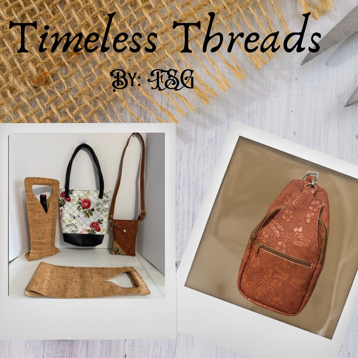 At Timeless Threads by FSG, creativity and sustainability go hand in hand. Founded by Frankie, our small but mighty studio transforms recycled and repurposed materials into beautiful, functional pieces meant to be cherished for years to come. From handcrafted wine and liquor 750ml bags to purses, tote bags, and one of a kind accessories, every item is thoughtfully designed with intention, care, and a deep respect for the environment. While some new materials are used, sustainable options are consistently prioritized in the workshop. Frankie believes that the things we carry should tell a story—one of resourcefulness, craftsmanship, and timeless style. Driven by a passion for reuse, she gives new life to materials that might otherwise be discarded, turning them into treasures that blend practicality with personality. Each creation is a reminder that sustainability can be both stylish and meaningful. At Timeless Threads by FSG, we don’t just make products—we make pieces with purpose. Treasures made from the past, crafted for the present, and designed to last into the future.