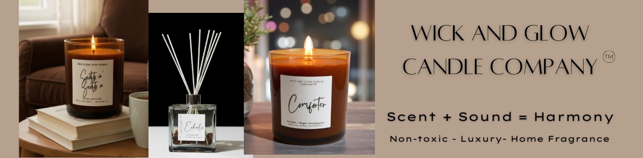 Wick & Glow Candle Company creates handcrafted luxury soy wax candles that blend scent, soul, and sound. Each clean-burning, vegan candle is inspired by 90s and 00s R&B music and paired with a curated playlist to elevate your self-care rituals. From warm, cozy blends like Coconut & Amber to bold notes of Teakwood & Mahogany, every candle is small-batch poured and toxin-free. Wick & Glow transforms fragrance into feeling — scents with soul, candles that set the mood.