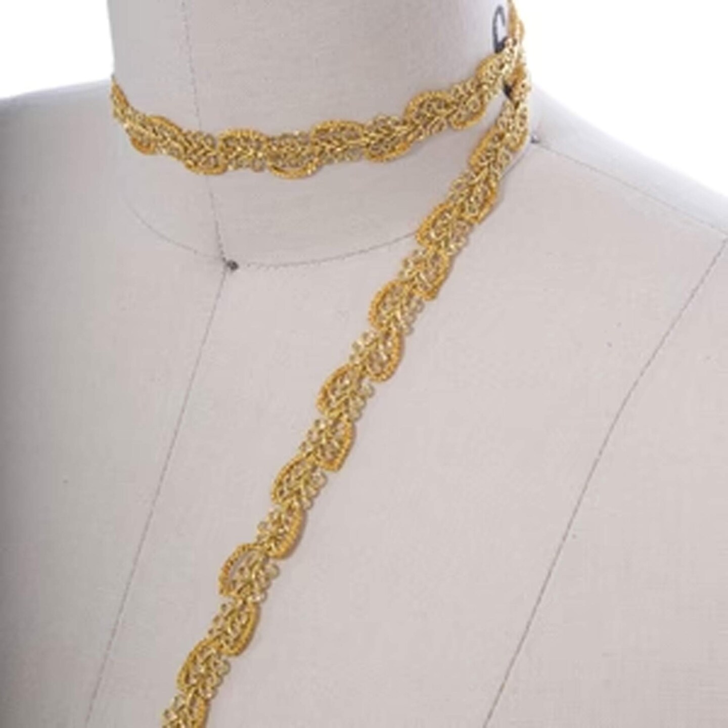 ½" Metallic Gold Swirl Braided French Gimp Trim – Indian-Inspired Zig Zag Metallic Border with Scalloped Edging