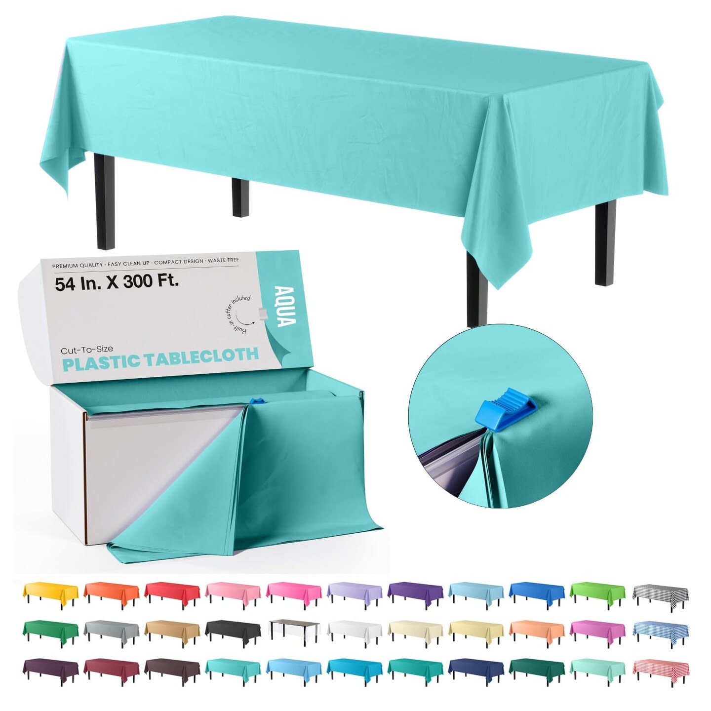 Party Solids 54" x 300' Plastic Table Cover Roll with Slide Cutter – Cut-to-Size Dispenser Box – Makes Up to 36 Disposable 8' Rectangle Tablecloths by Exquisite