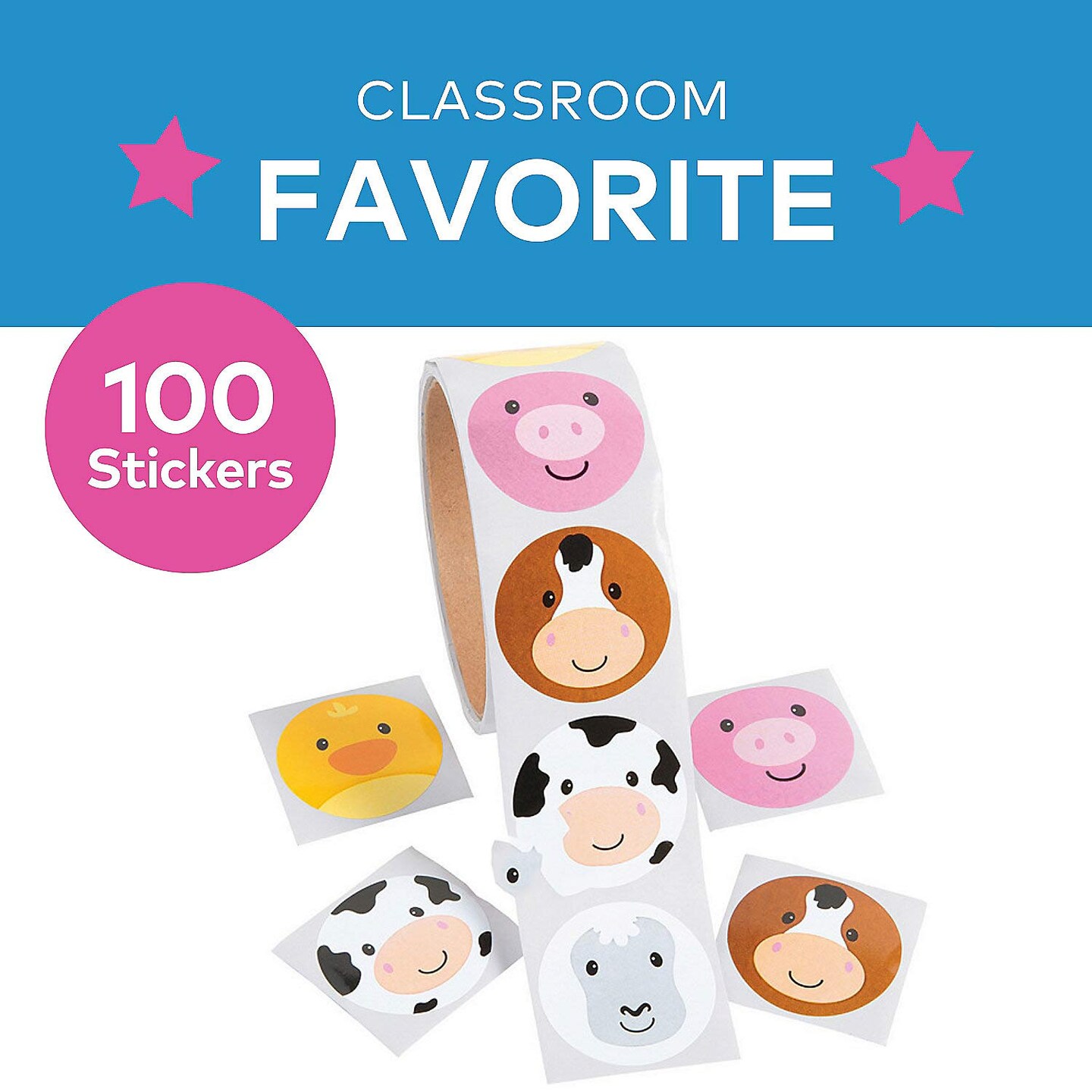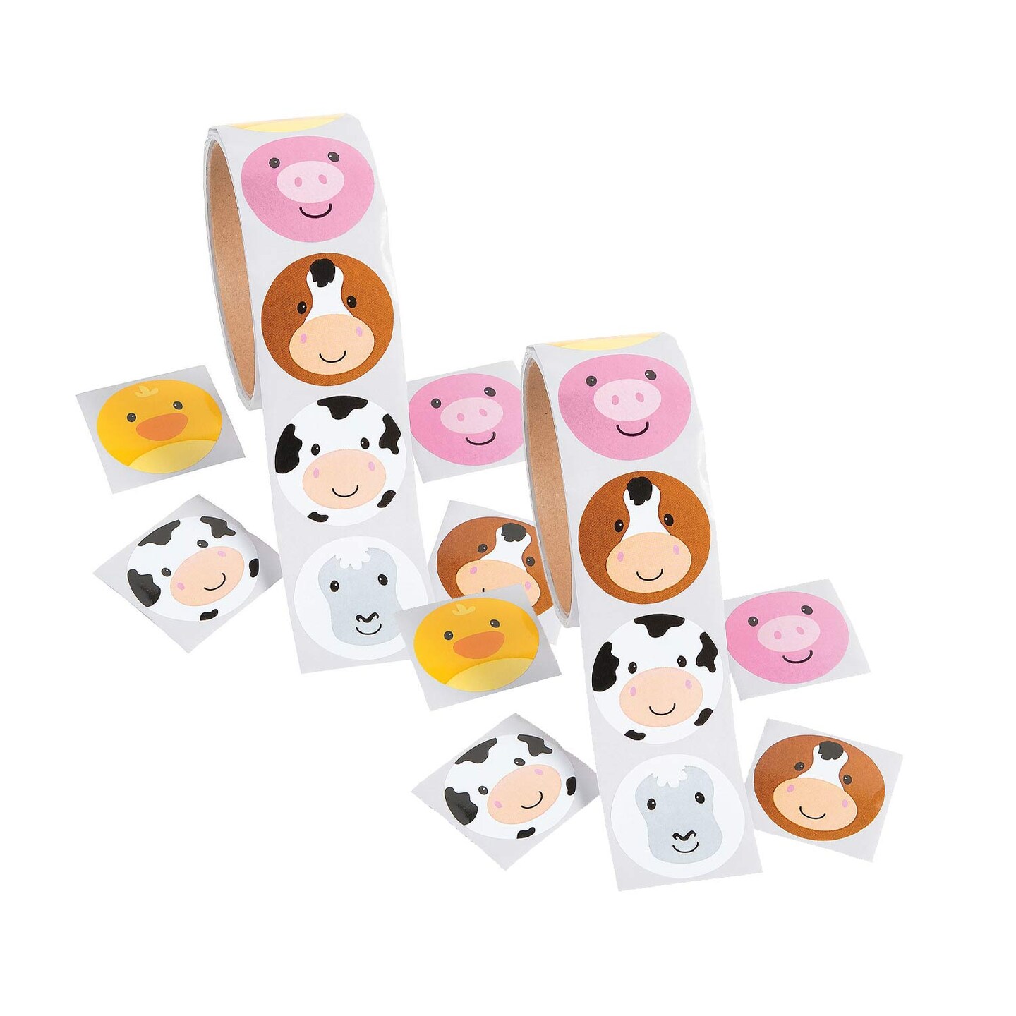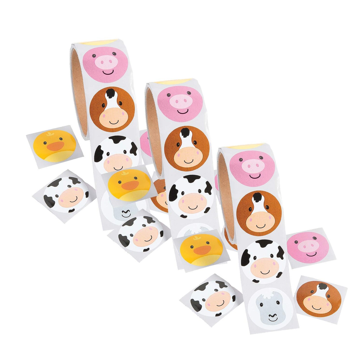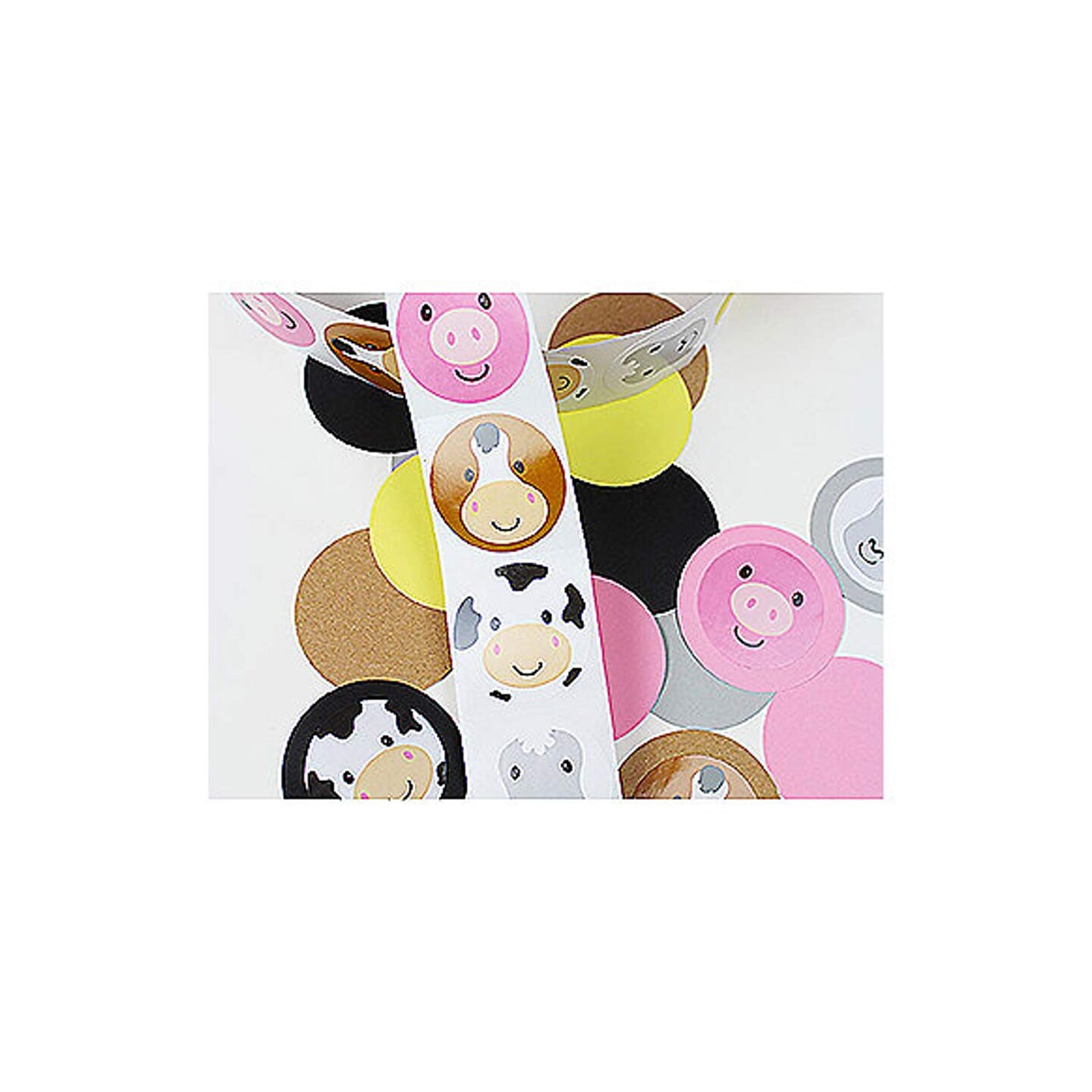 1 1/2" Farm Animal Face Multicolor Paper Sticker Roll 100 Pc