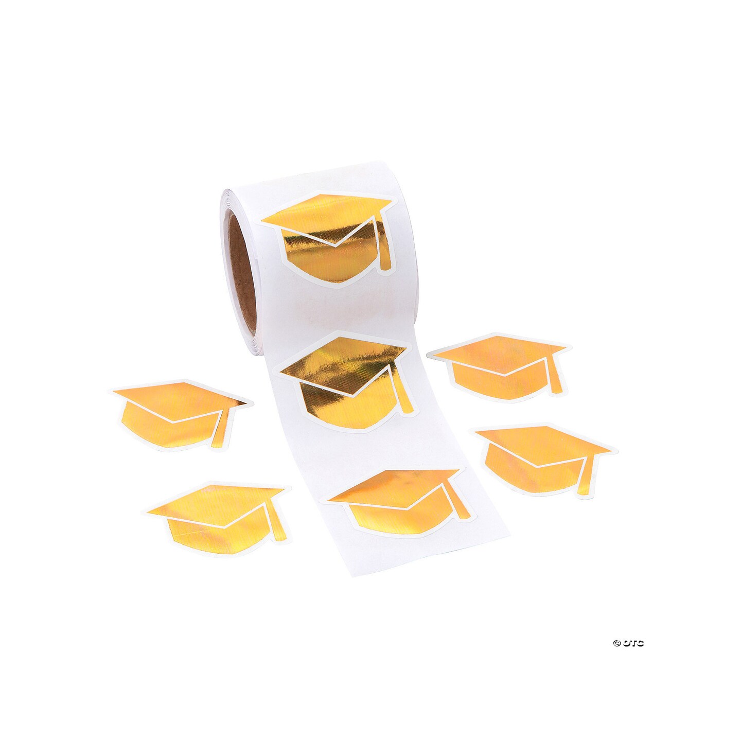 1 1/2" Gold Graduation Mortarboard Paper Sticker Roll – 100 Pc.
