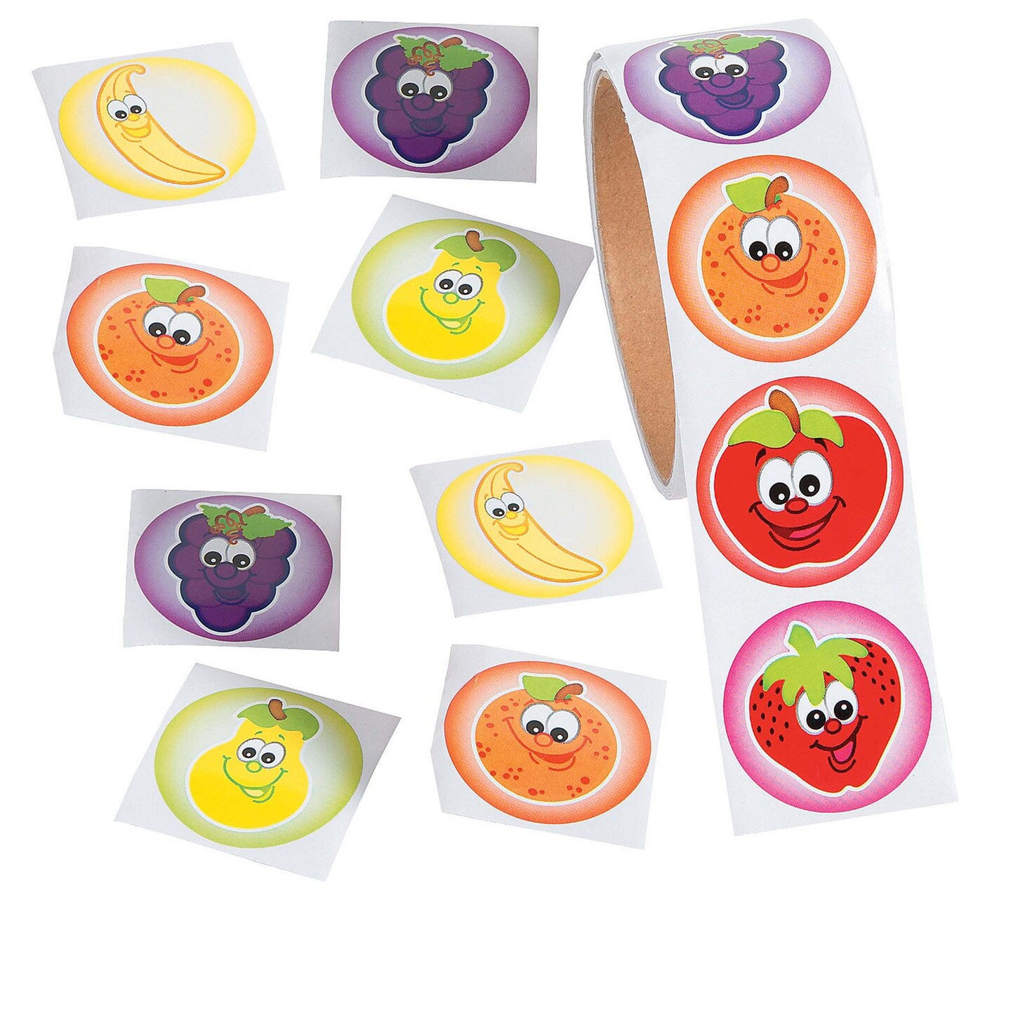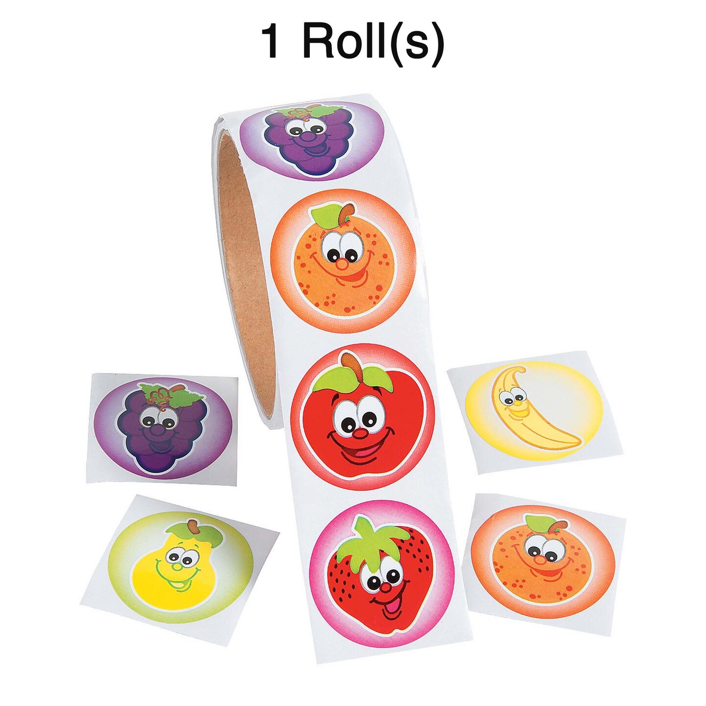1 1/2" Multicolor Fruit Sticker Roll 100 Pieces