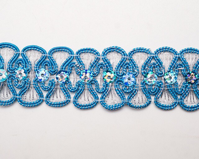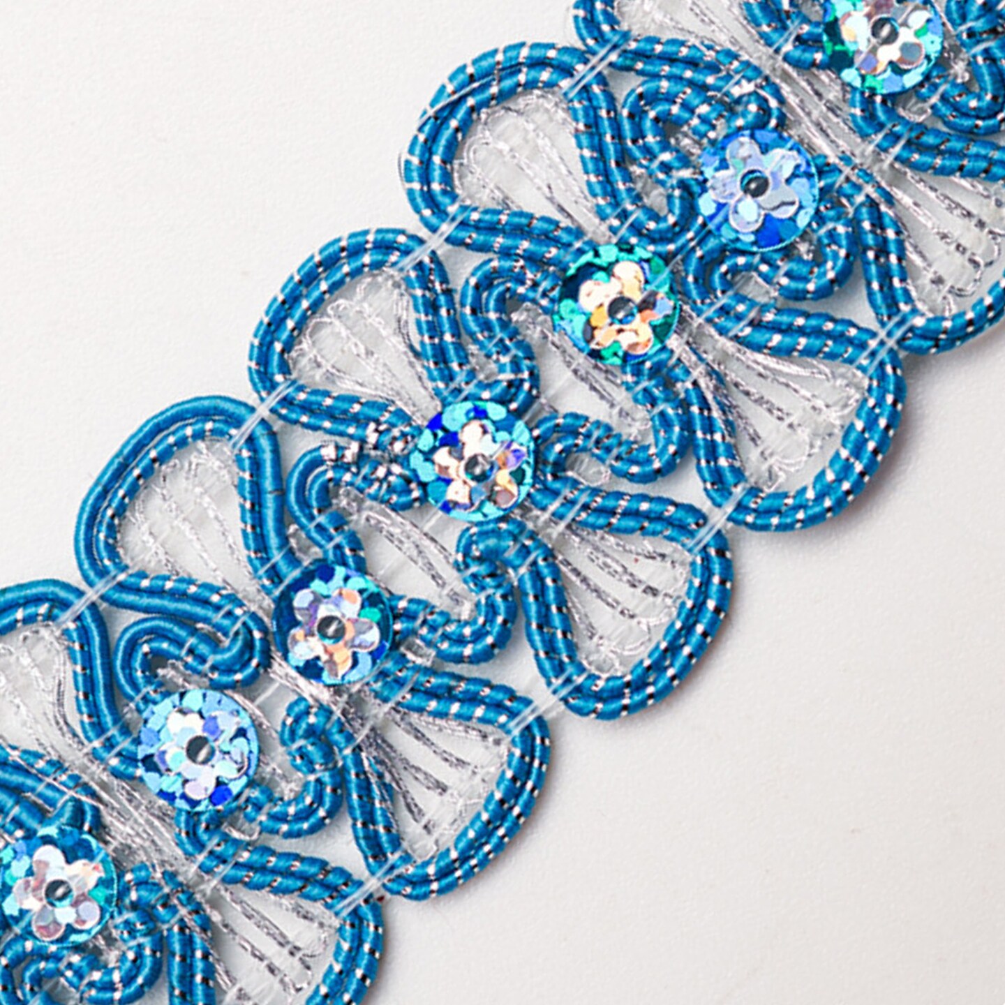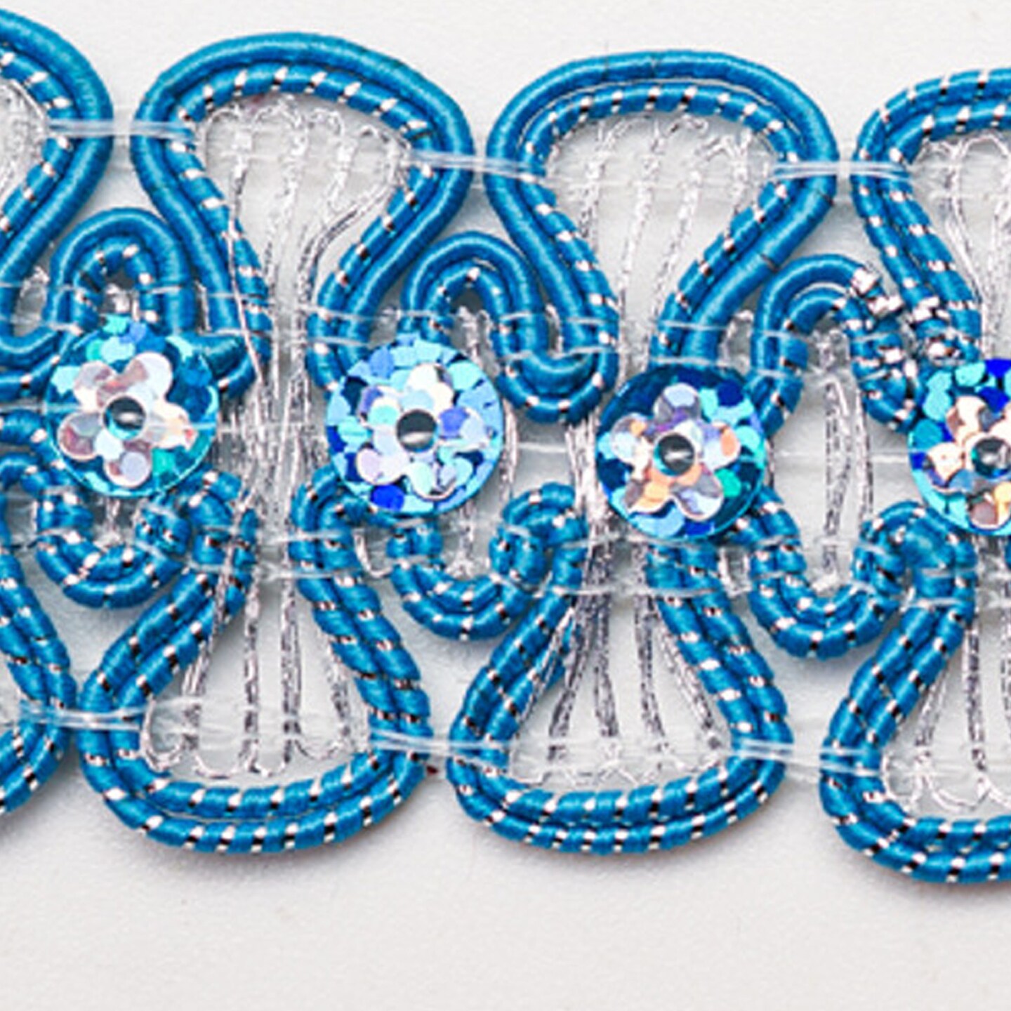 1 1/4" x 10 Yards Turquoise/Silver Braided Floral Sequin Trim Pack of 5