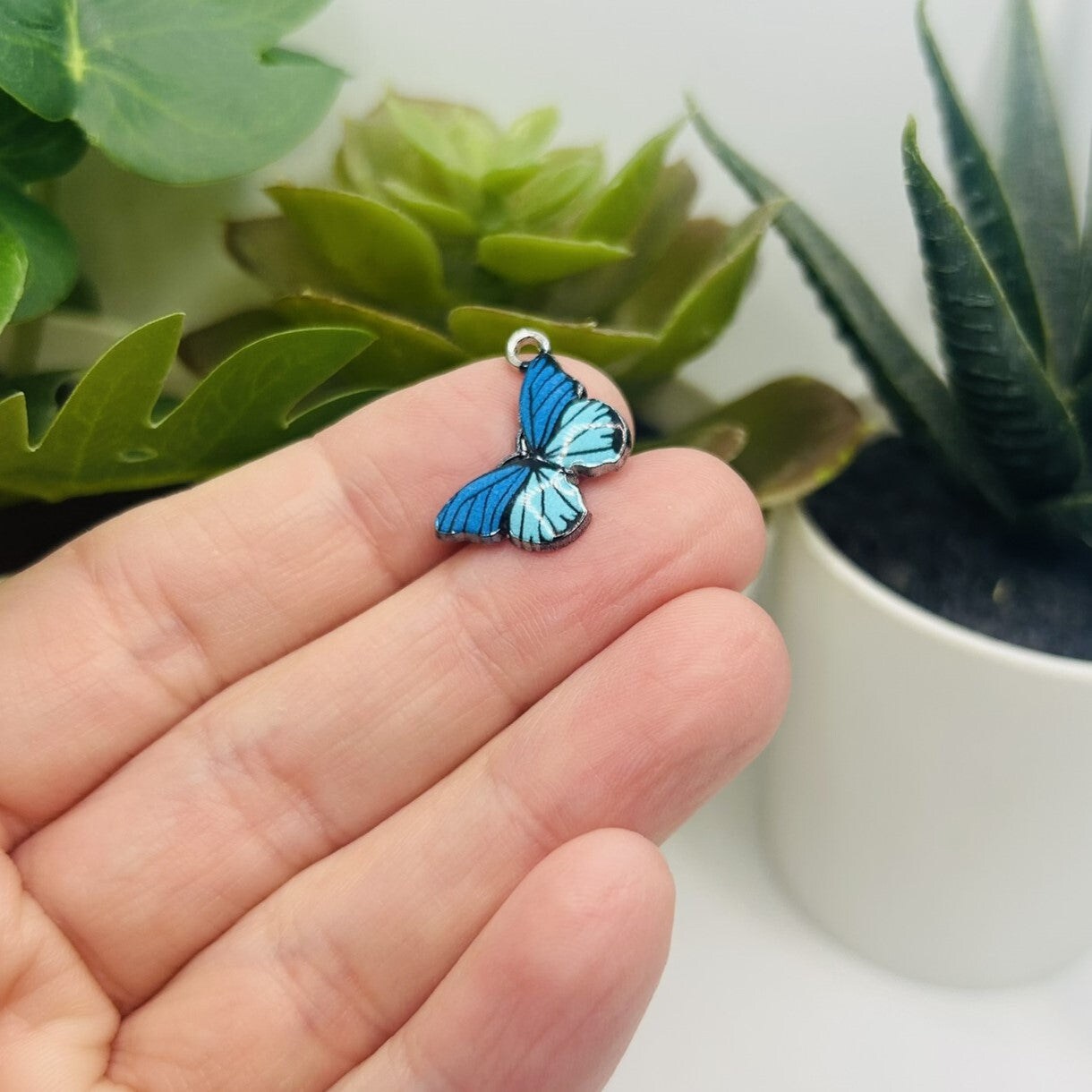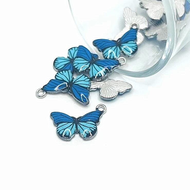 1, 4, 20 or 50 Pieces: Dark Blue Striped Butterfly Charms