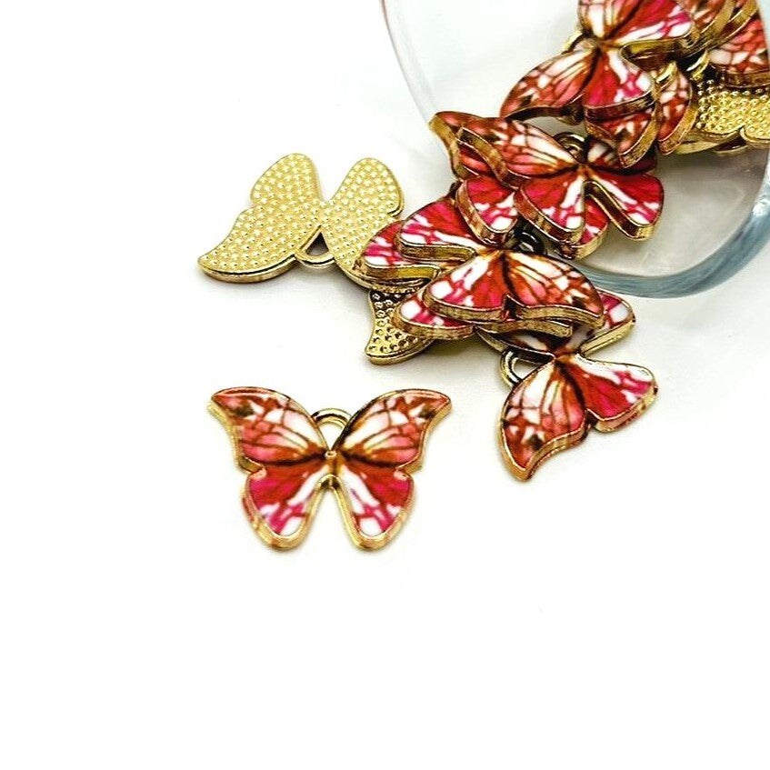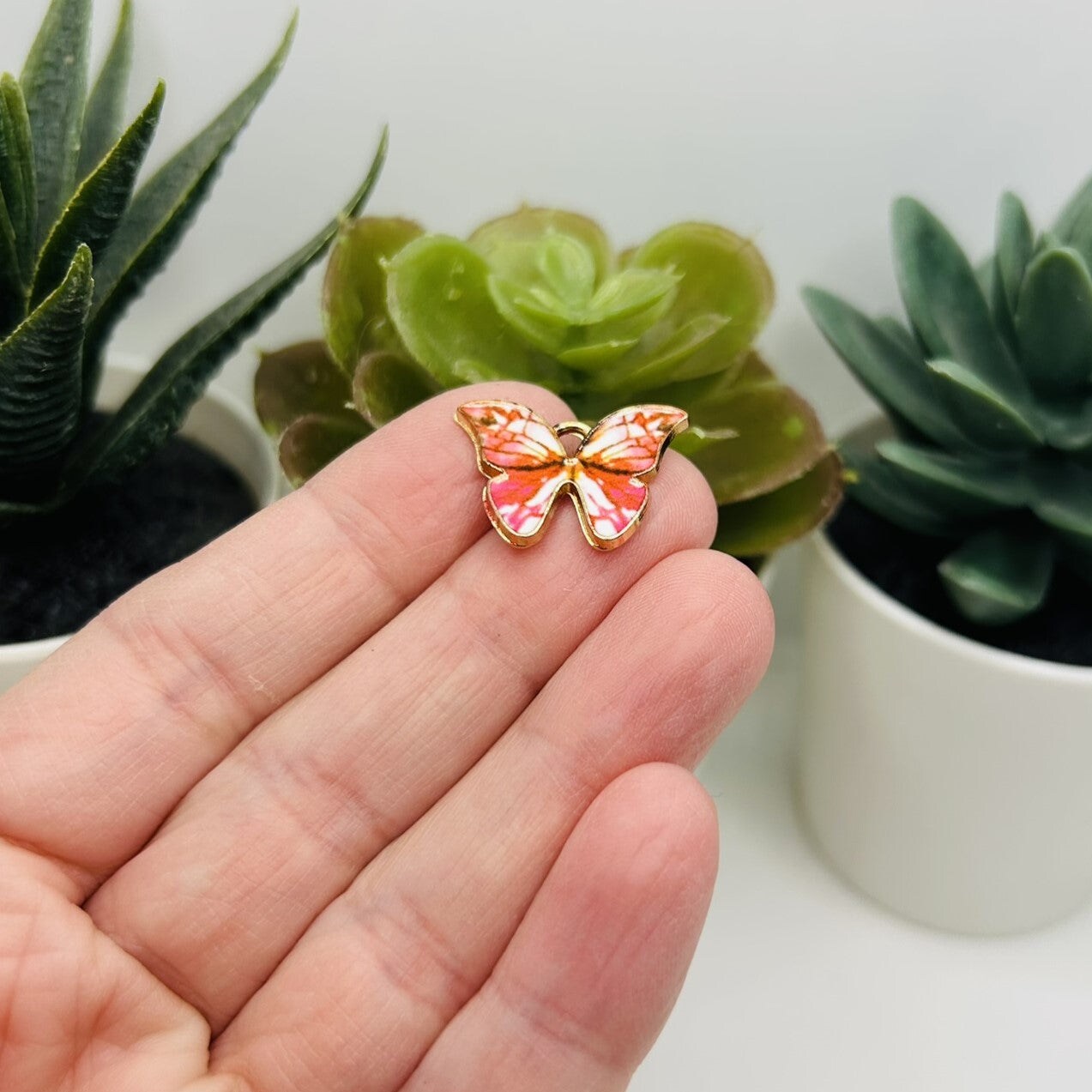 1, 4, 20 or 50 Pieces: Pink Enamel Butterfly Charms