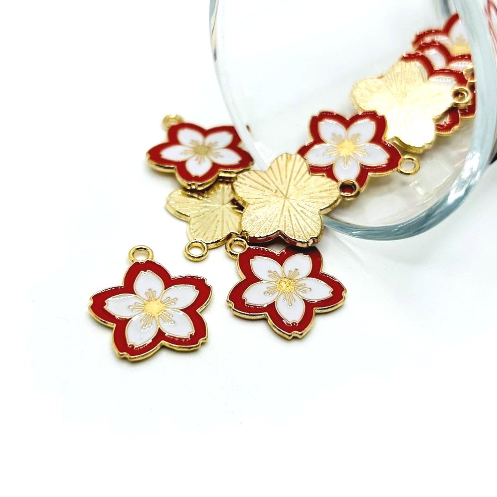 1, 4, 20 or 50 Pieces: Red and White Enamel Flower Charms