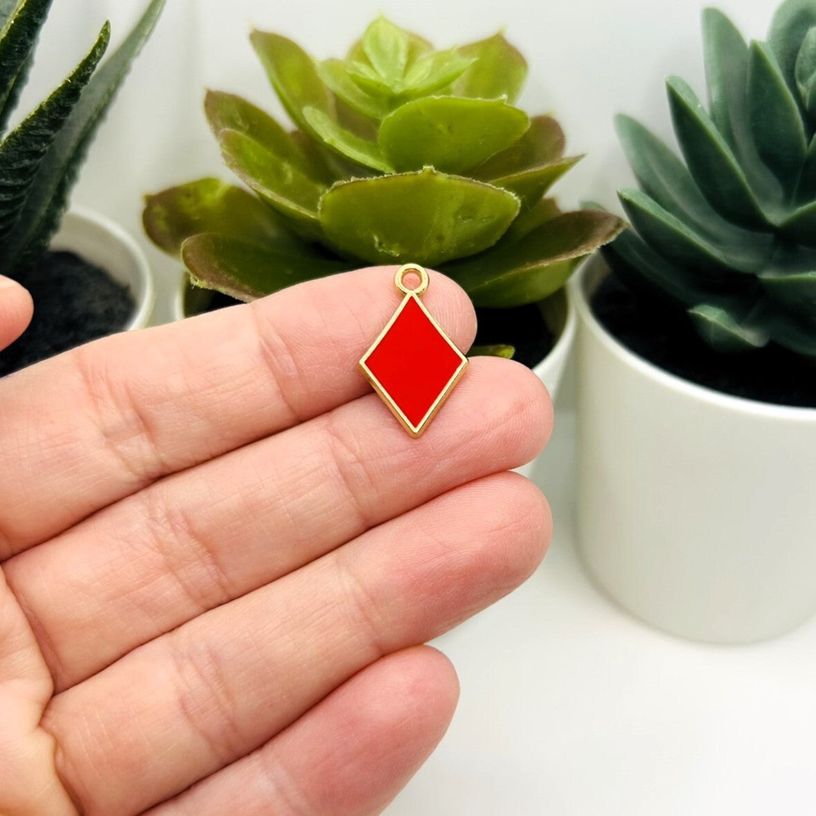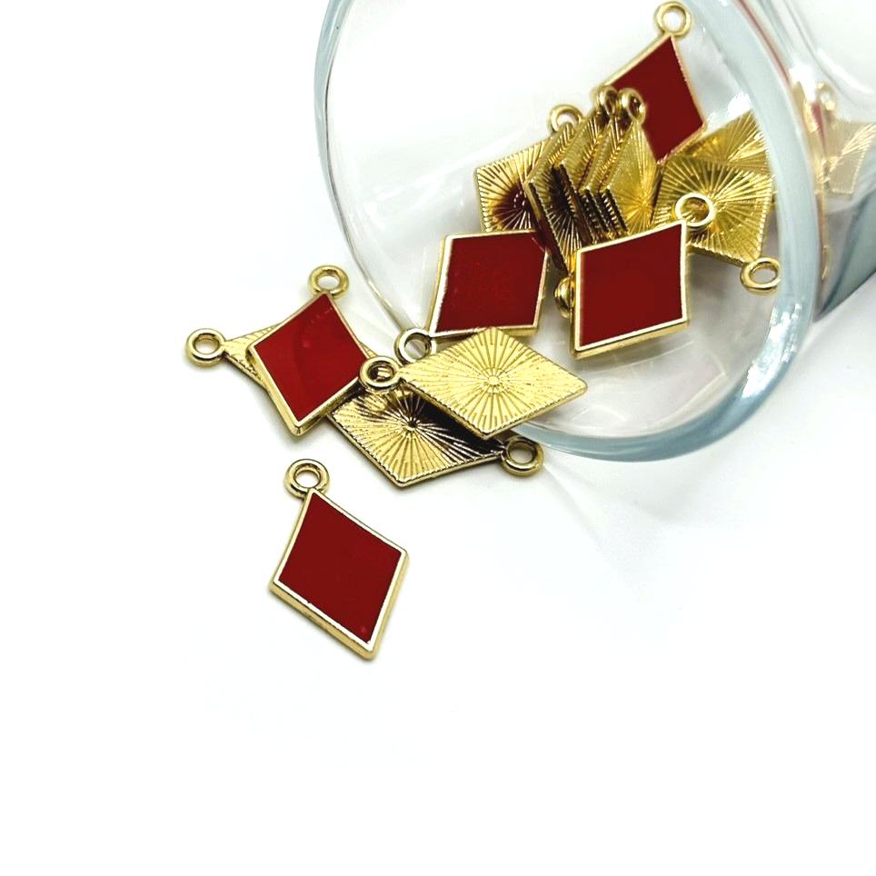 1, 4, 20 or 50 Pieces: Red Playing Card Diamond Charms