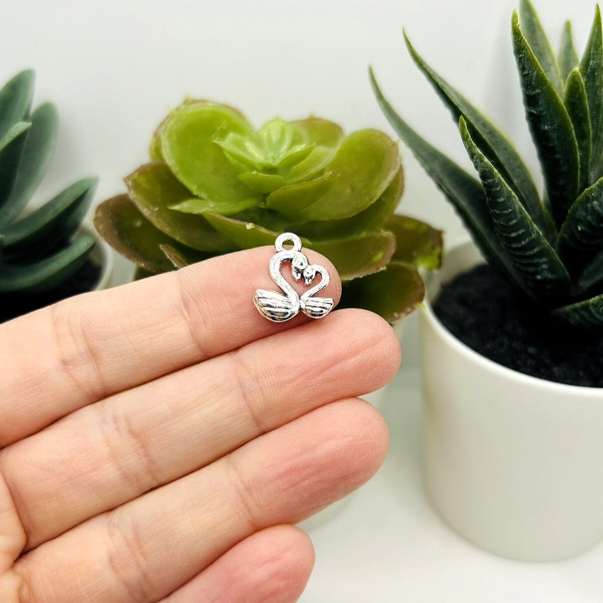 1, 4, 20 or 50 Pieces: Small Swan Valentine's Day Charm - Double Sided