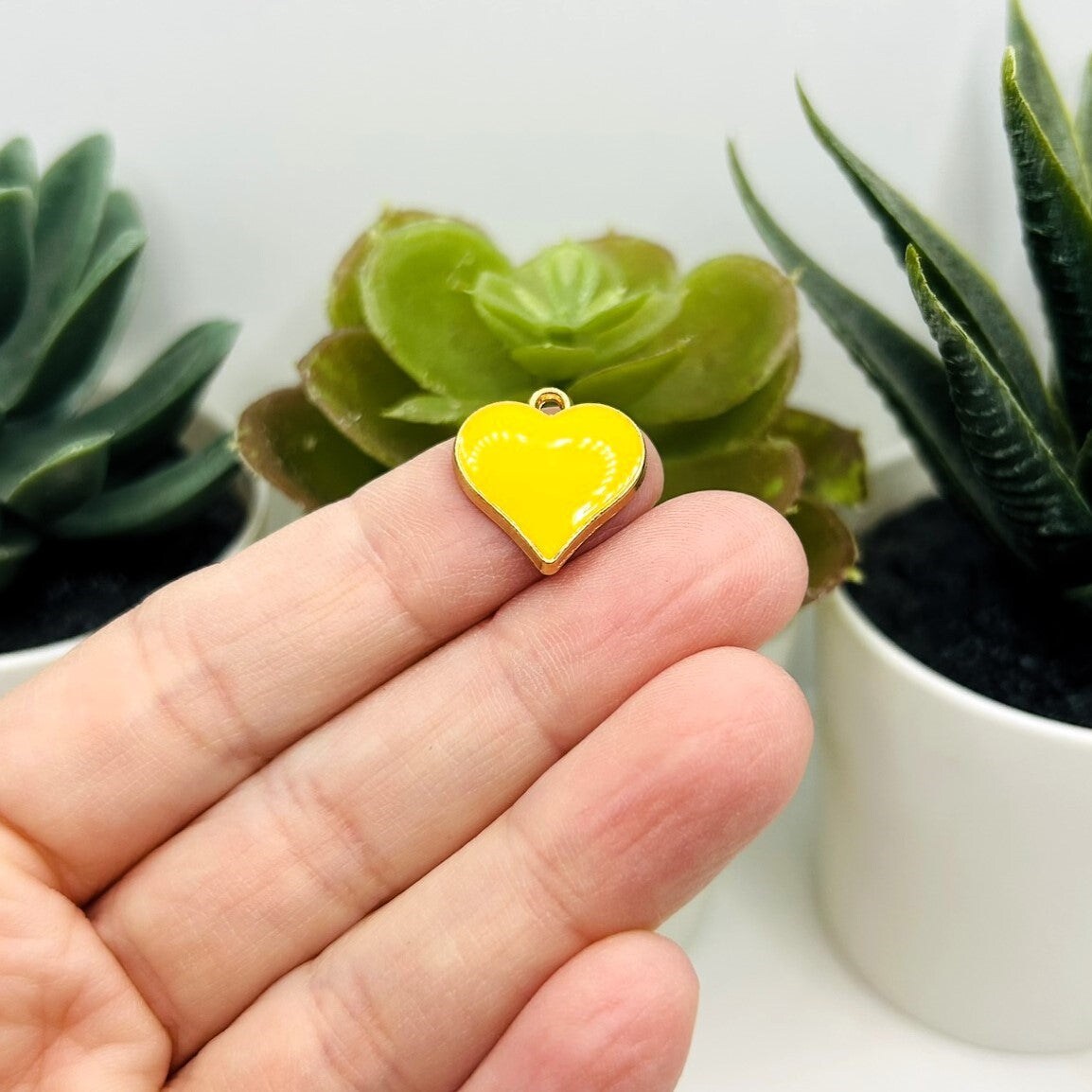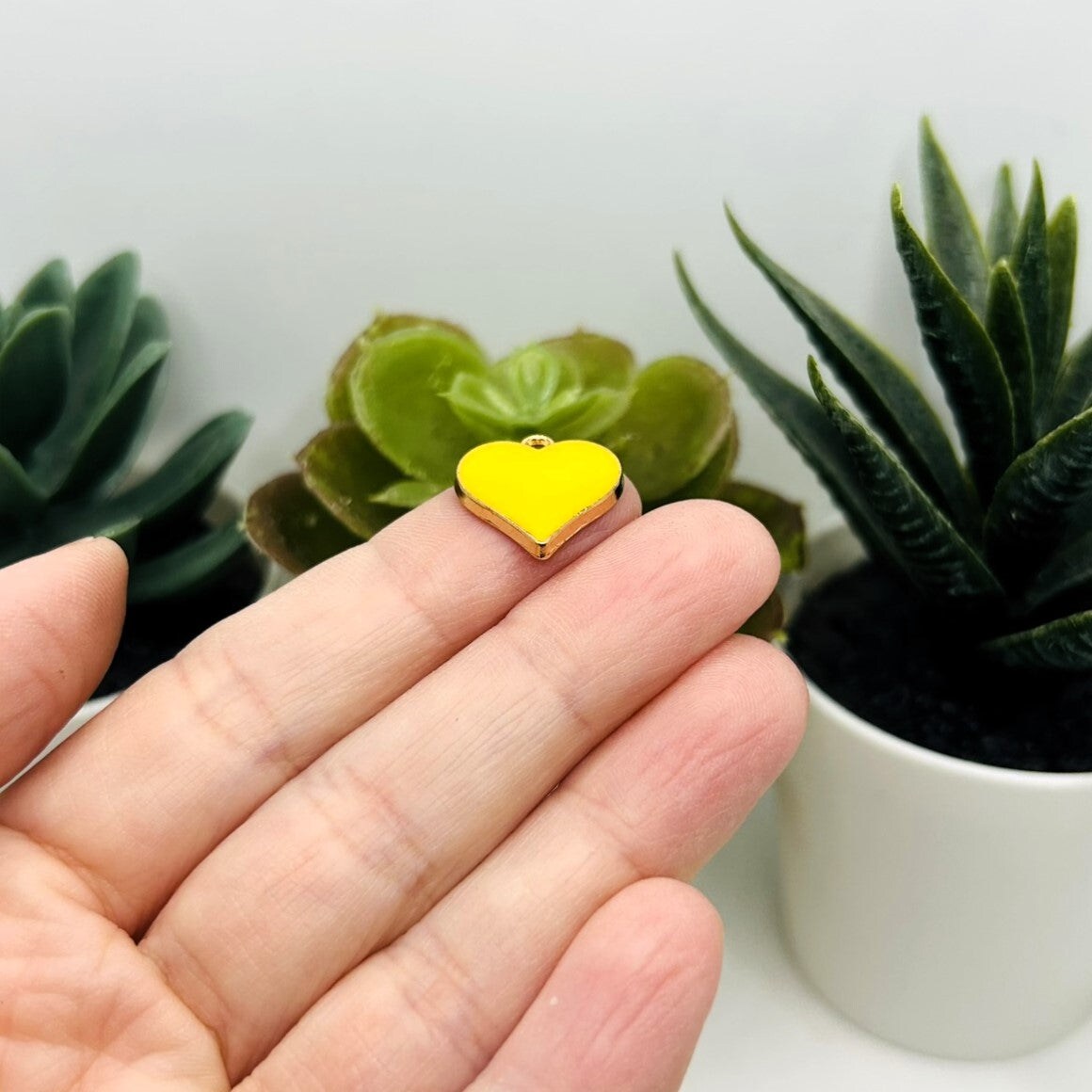 1, 4, 20 or 50 Pieces: Yellow Enamel Heart Charms