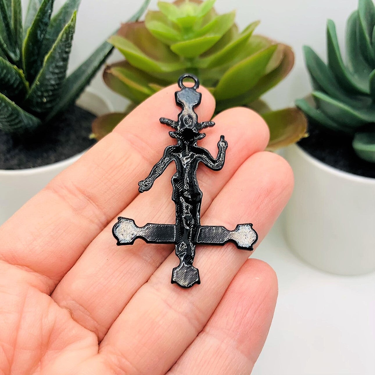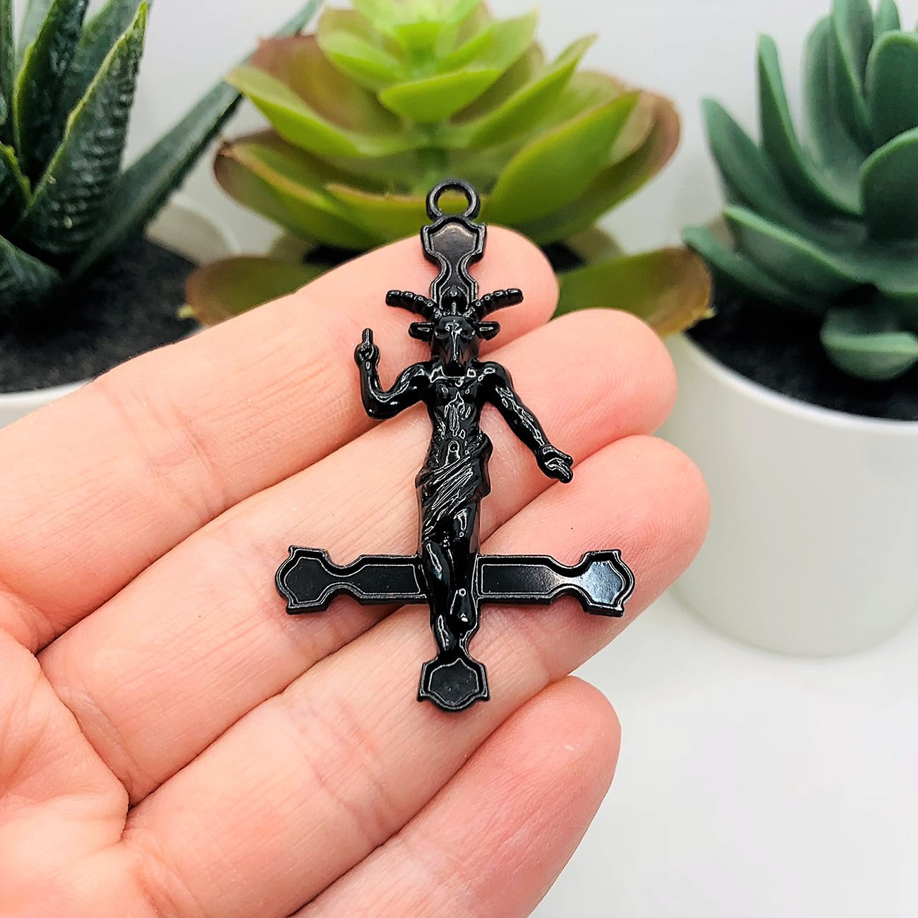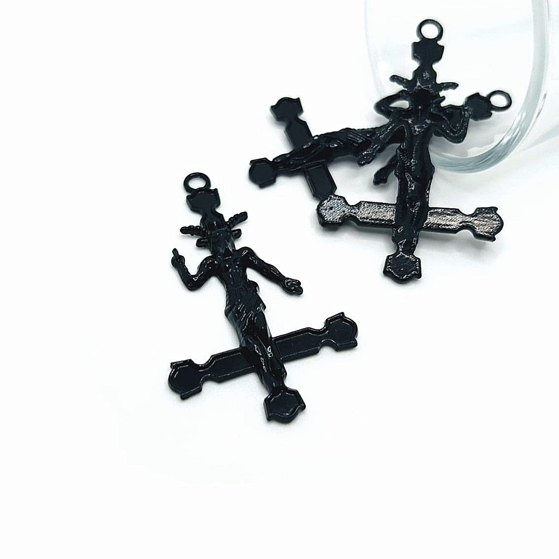 1, 4 or 20 Pieces: Black Enamel Inverted Cross Pendant with Baphomet