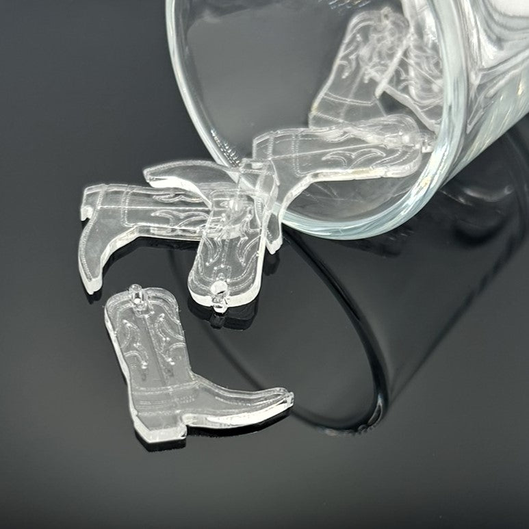 1, 4, or 20 Pieces: Clear Acrylic Cowboy Boot Charms
