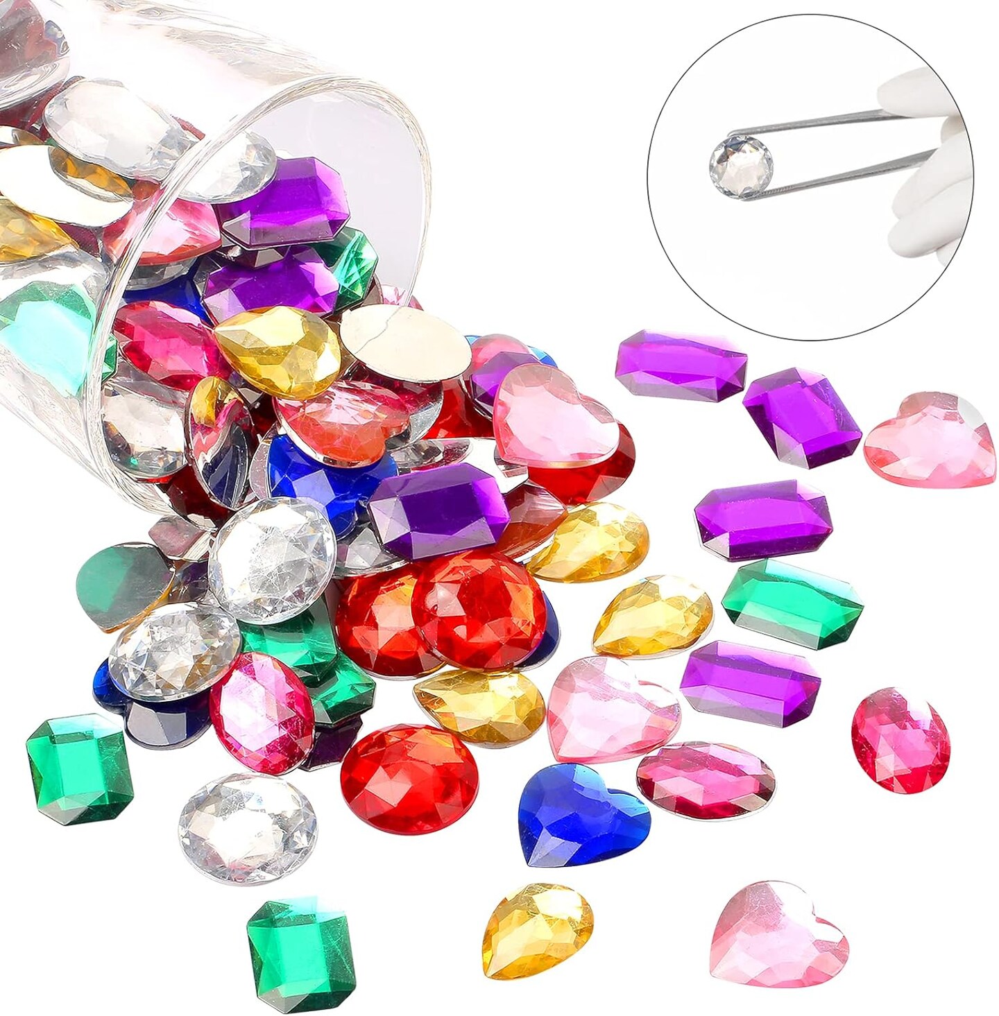 1" Assorted Flat Back Heart Shaped Rhinestones - Multicolored (120PCS)
