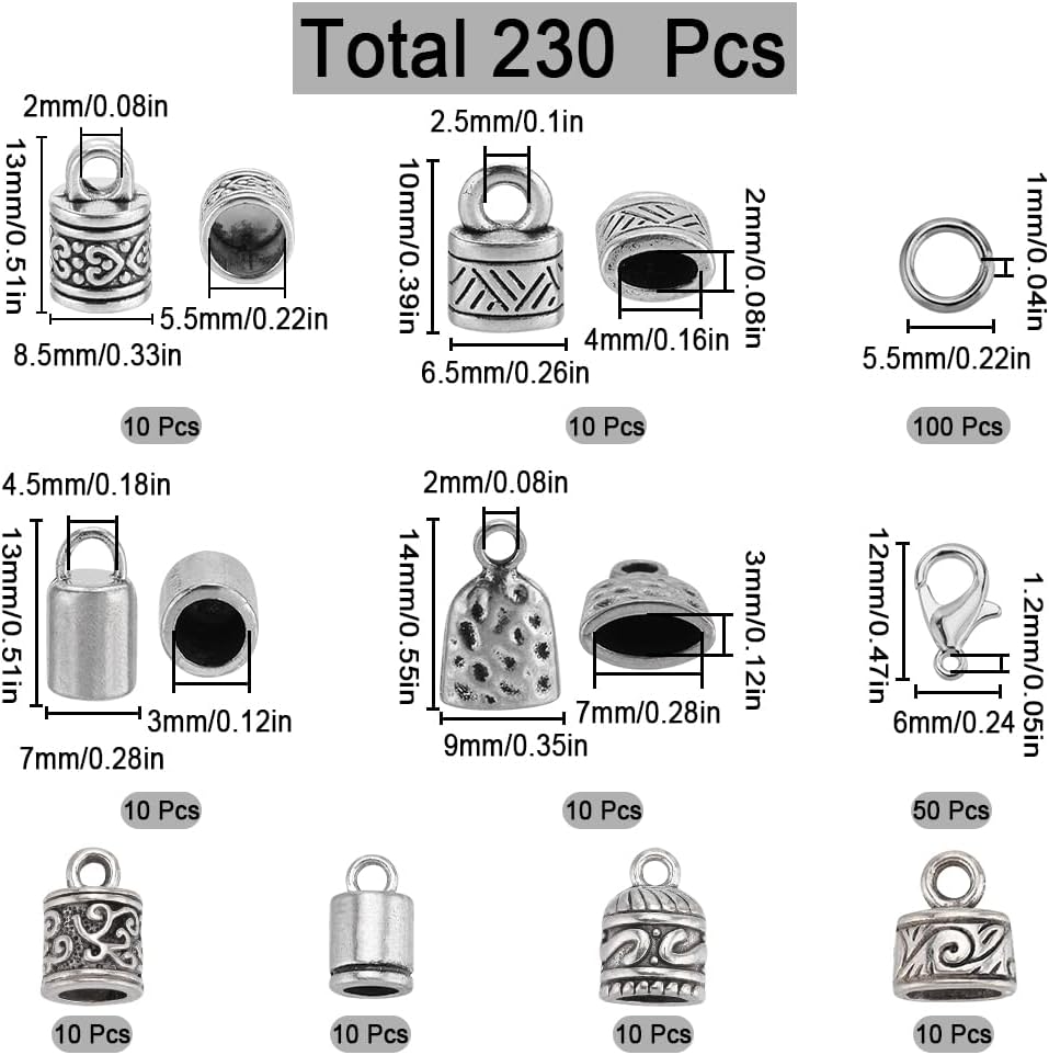 1 Box 230Pcs Cord Lobster Clasps Tibetan Antique Silver for Jewelry Making Kit