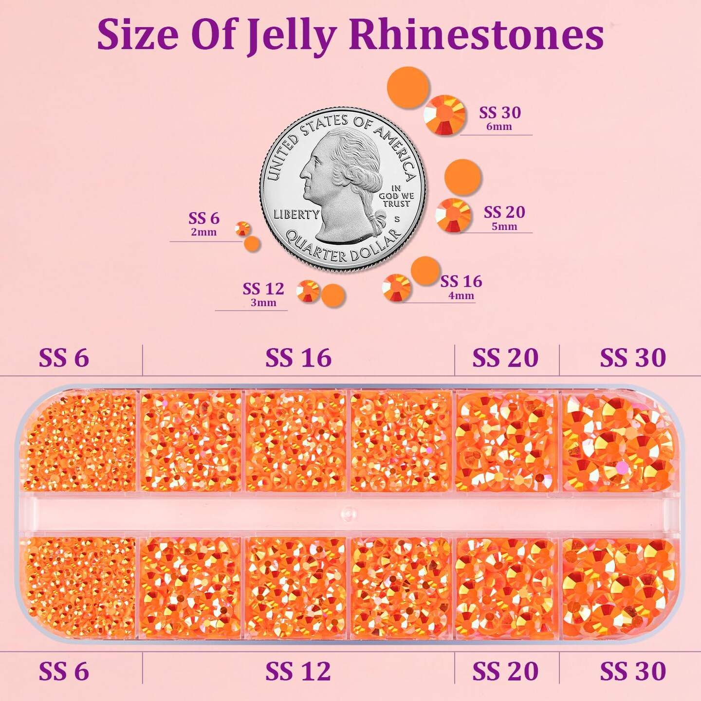 1 Box Orange AB Resin Jelly Flatback Rhinestones with 3Pcs B7000 Glue