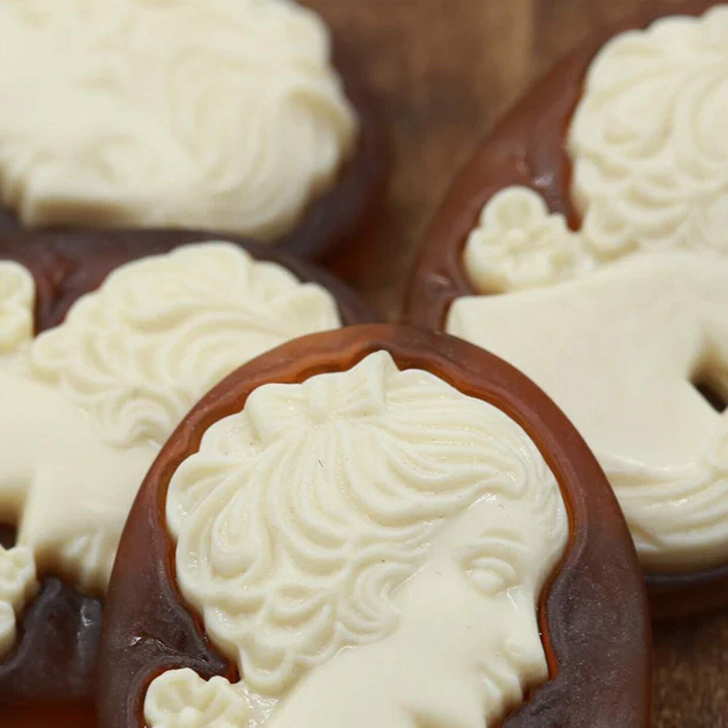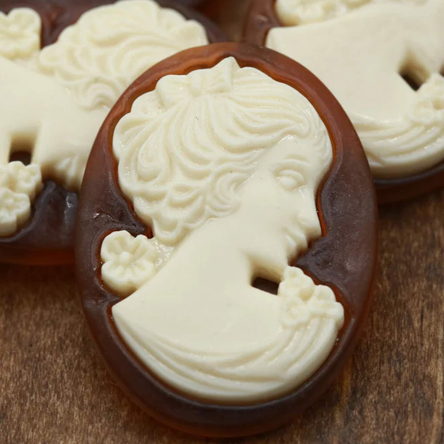 1 Cameo Button Brown Background with Ivory Silhouette & Removable Shank Loop