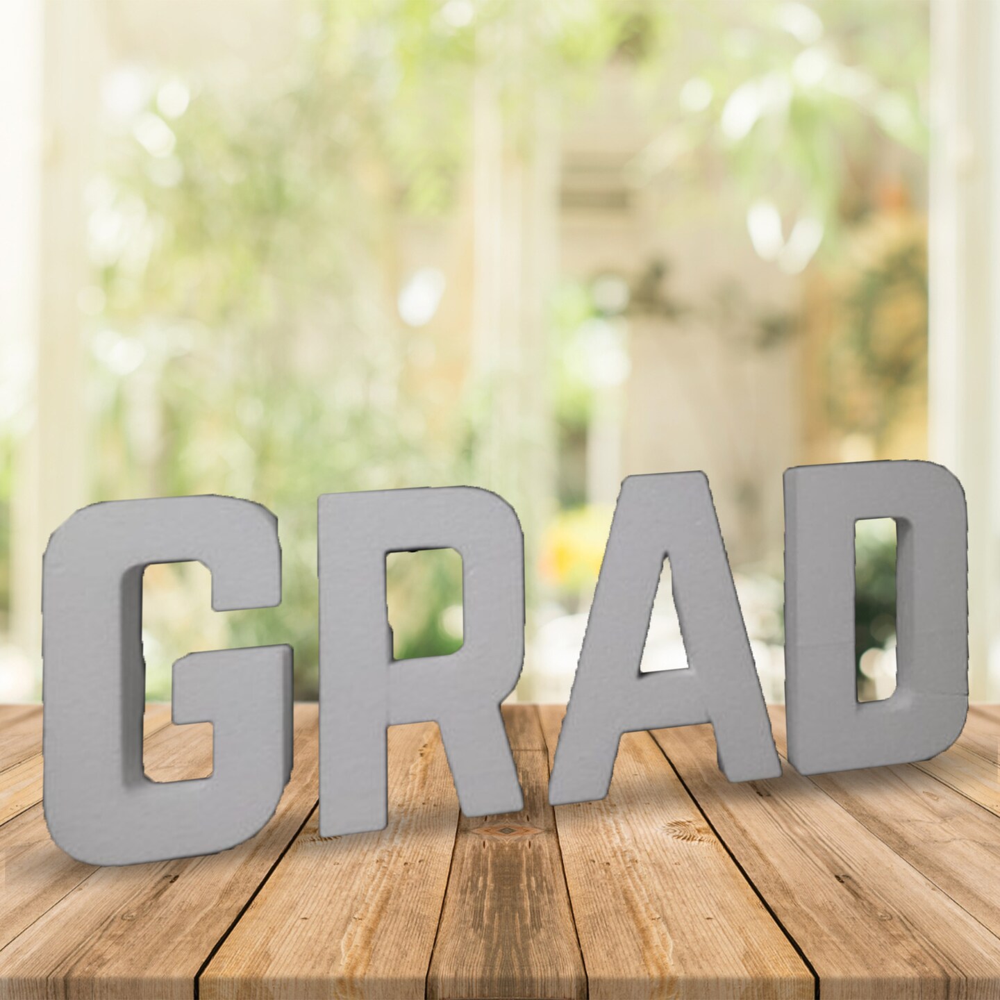 1 Count GRAD Painted Silver Foam Letters Large Party Decor Customizable Foam Letters 24"