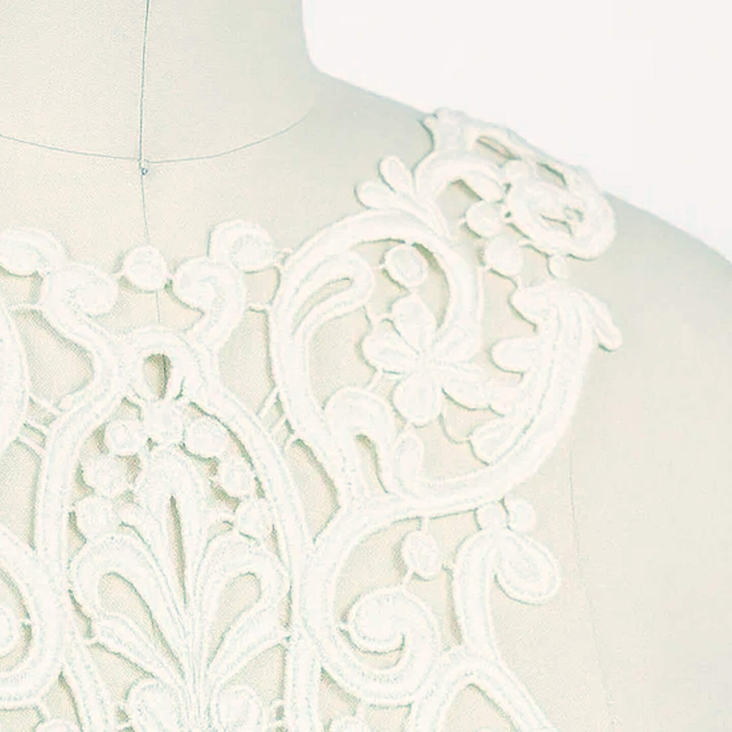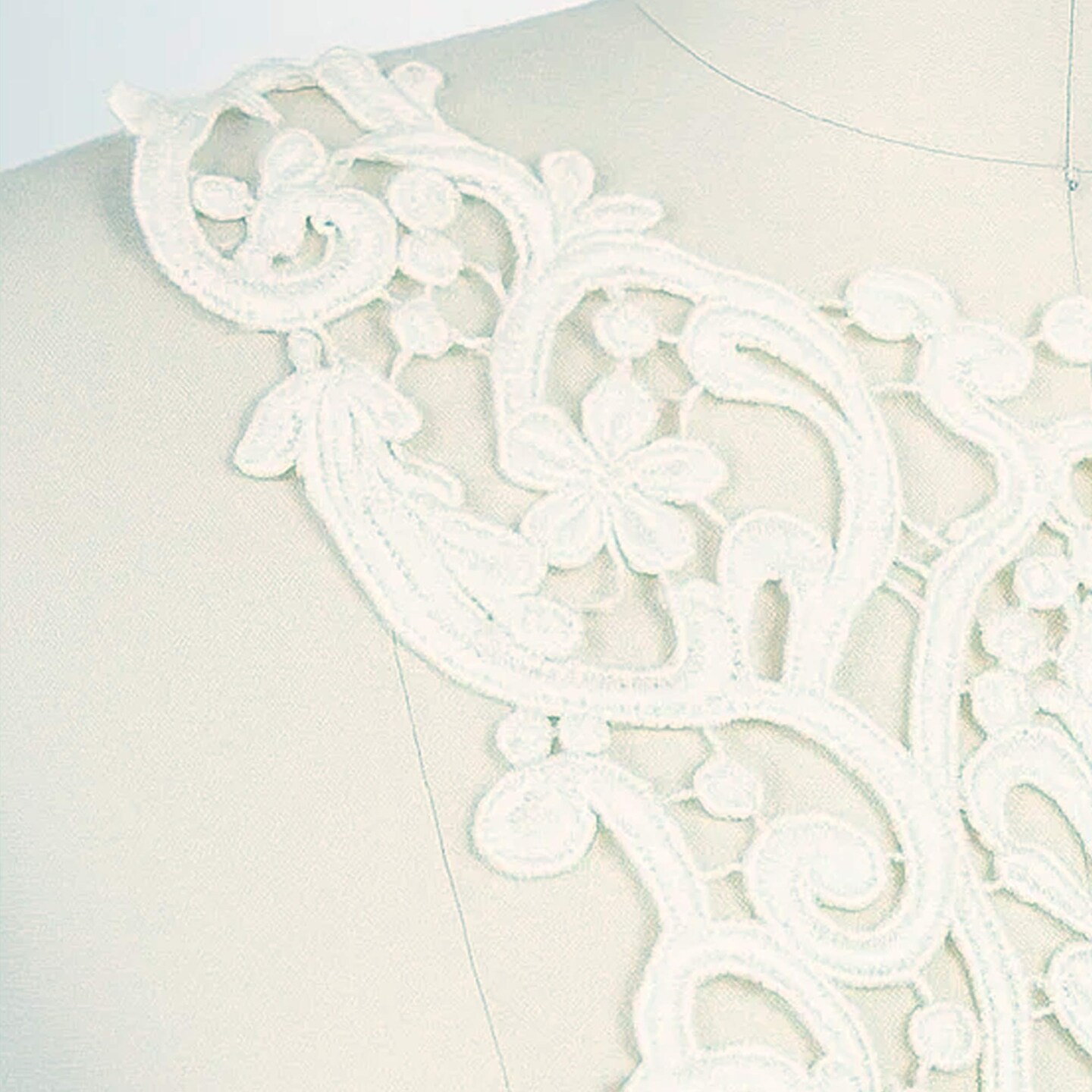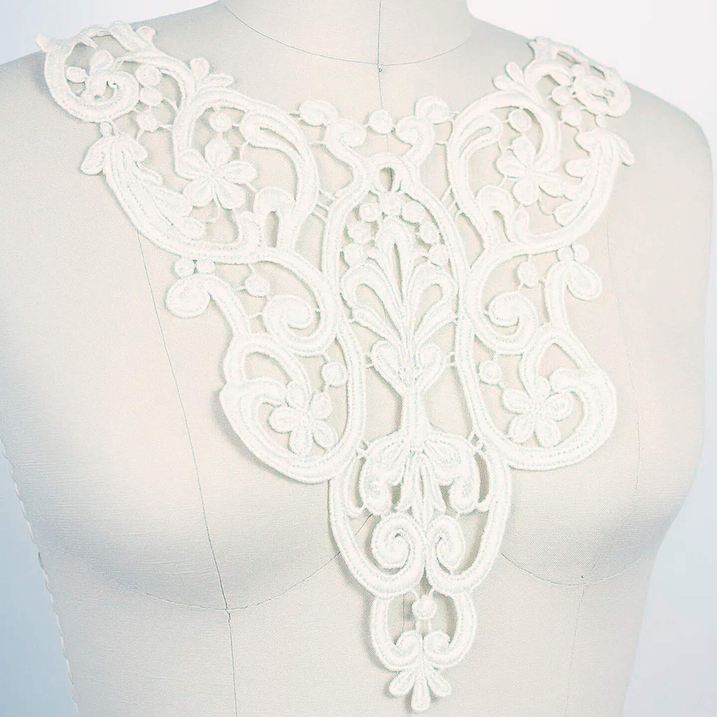 1 Dramatic White Venice Lace V Shaped Applique Victorian Style Large Oversized Collar for Gown or Blouse