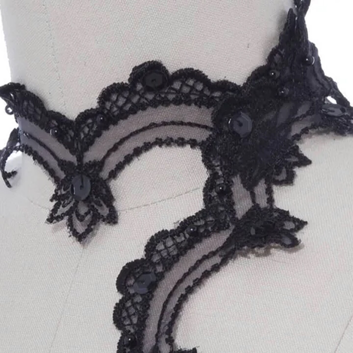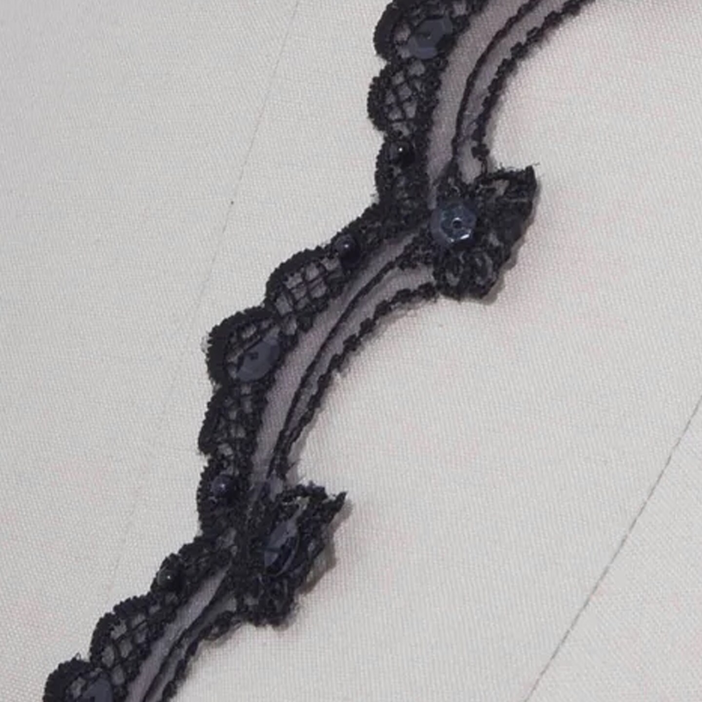 1 Inch Black Beaded Lace Trim On Clear Chiffon With Scalloped Arches 1 Yard For Formal Decor