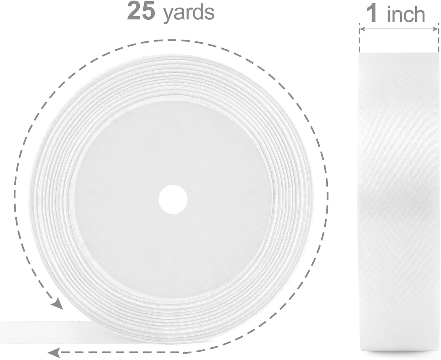 1 Inch Double Face Satin Ribbon White, 25Yards Craft Fabric Ribbon
